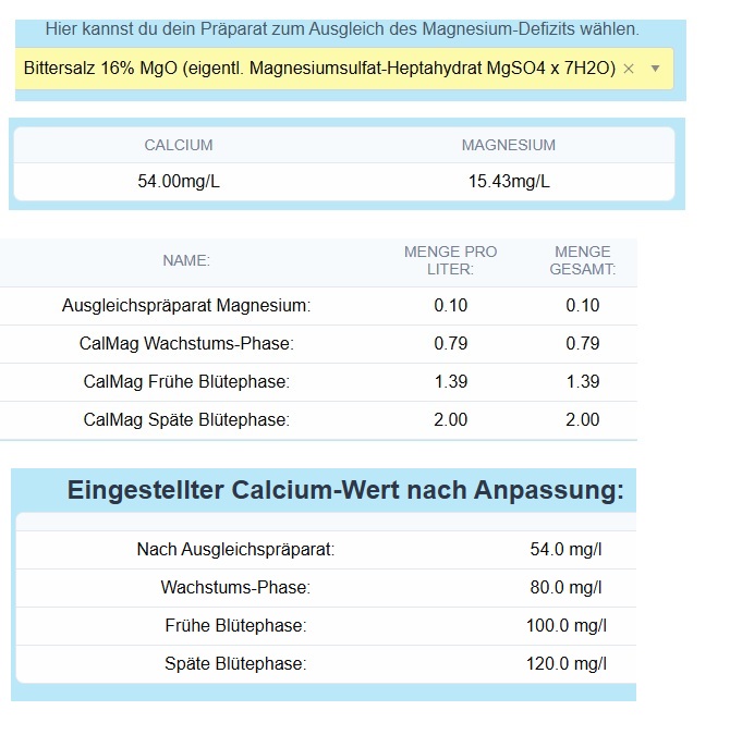 Laut Tabelle muss Magnesium (werde wohl Bittersalz verwenden) um 100 zugegeben werden. 100mg? 100g?