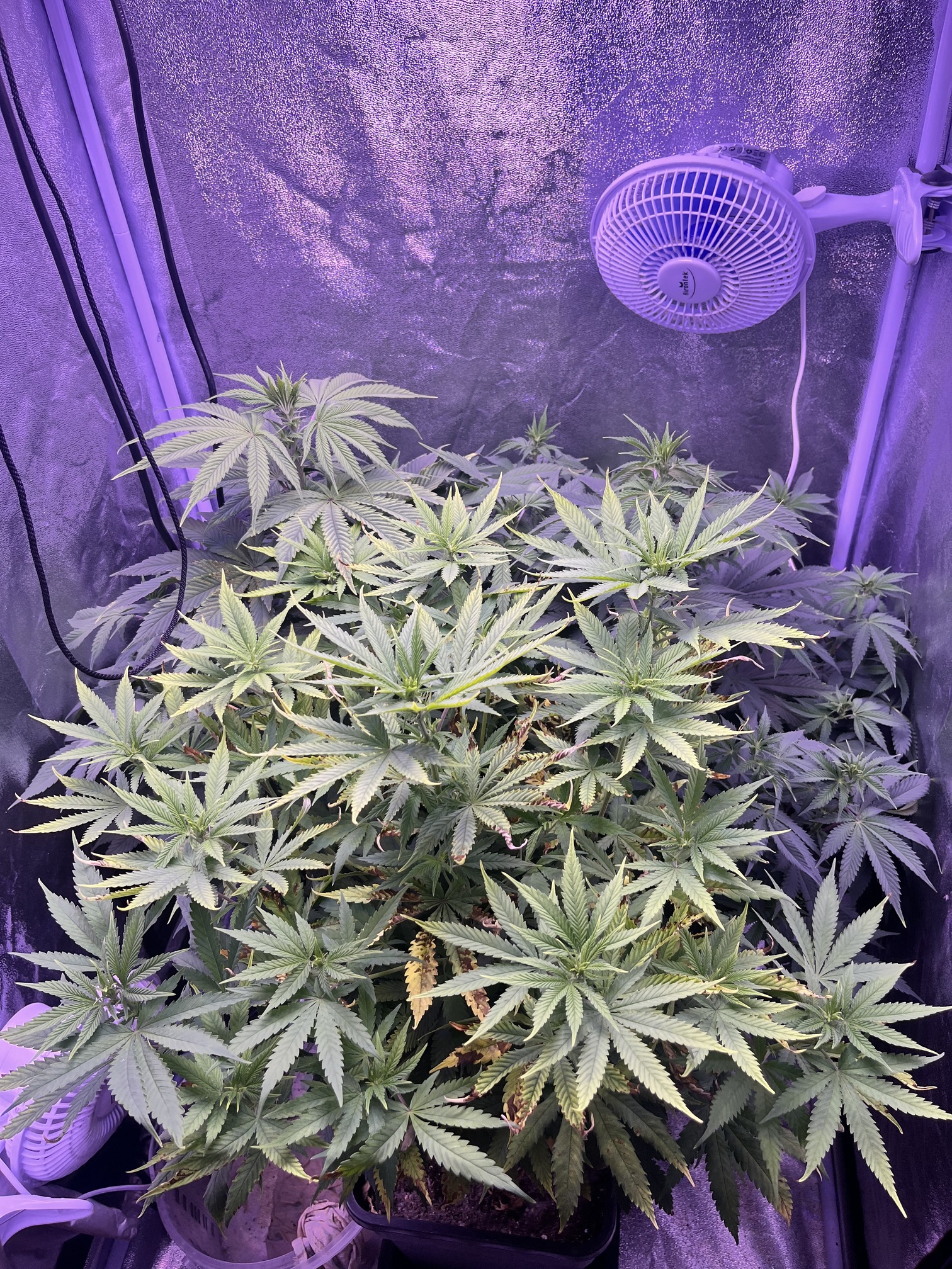 Jo das schaut mir nach lichtbrand aus, lade dir mal die App photone runter im app store. Und kontroliere mal deine lichtwerte. solltest in der 1 Blütewoche so bei 700ppf sein Bzw ein DLI von 26. Kannst du beides mit der App prüfen indem du deine frotkamera auf Blattspitzenhöhe haltest.