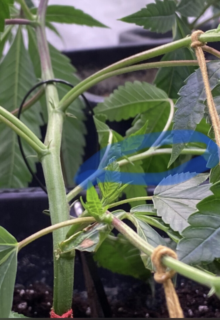 Bei der Blueberry OG sind die neuen Seitentriebe nicht so weit nach oben gewachsen.