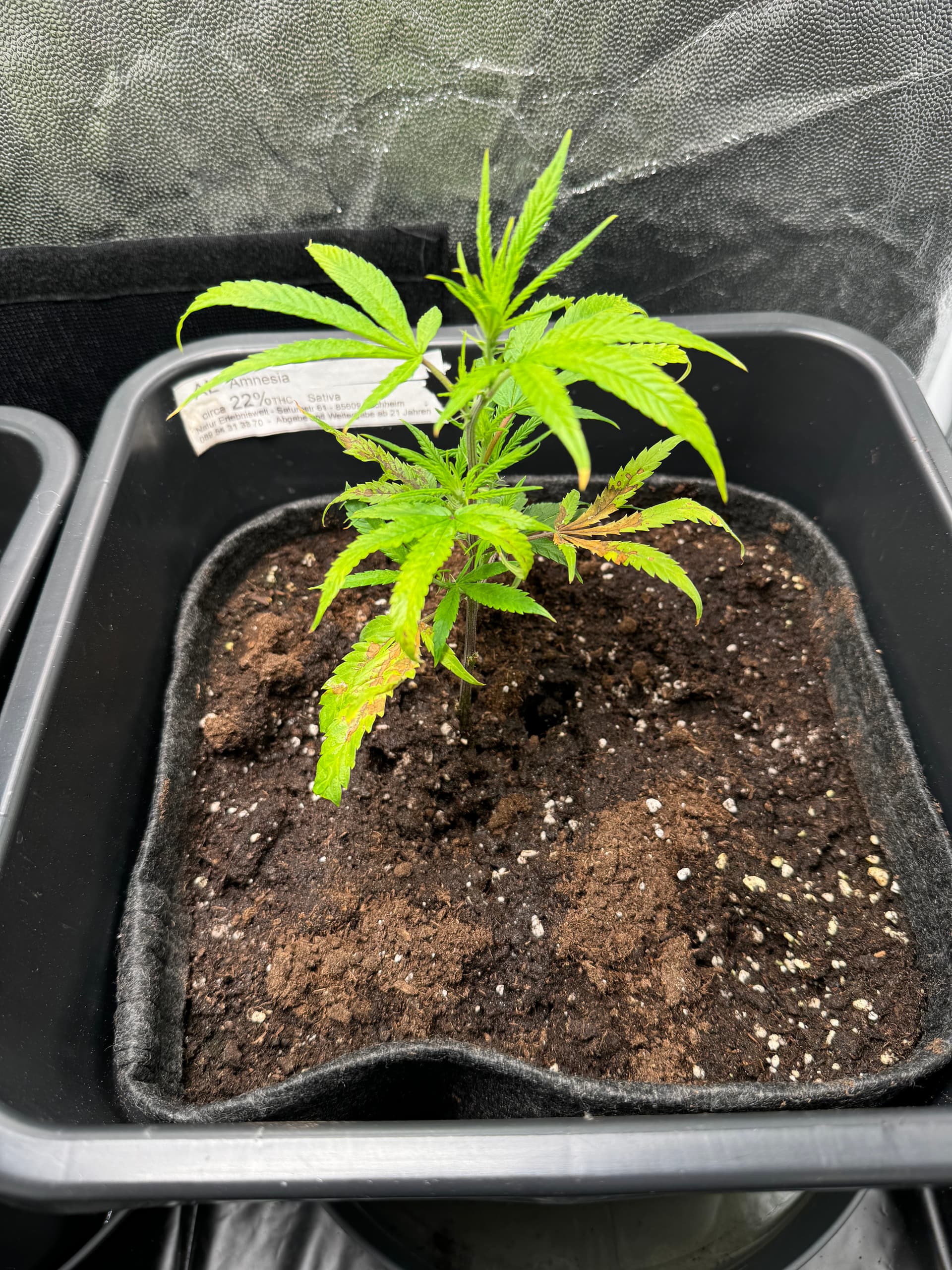 Die eingerollten Blätter hat nur die Pflanze links (Apple Fritter) mittlerweile. Die braunen Blätter ganz unten bei der rechten Pflanze (Amnesia) habe ich verbrochen, weil ich sie nach dem Umtopfen mit eiskaltem Wasser gegossen habe, meine ich. Hab aber noch während des Gießens gedacht, was mach ich denn da fürn Quatsch und habs dann schnell gelassen. Das hat sie trotzdem und zurecht mit diesen braunen Blättern ganz unten quittiert. Hat sich aber mittlerweile gut erholt von dem Schock. Das ist auch gar nicht mein Problem - mein Problem ist die linke mit ihren eingerollten Taco Blättern.