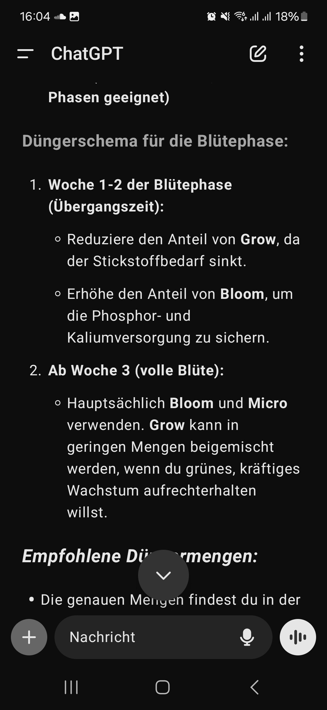 Ich habe vor Beginn der Blüte über mehrere Tage mit Komposttee gegossen und den Tee auch als Blattspray verwendet.