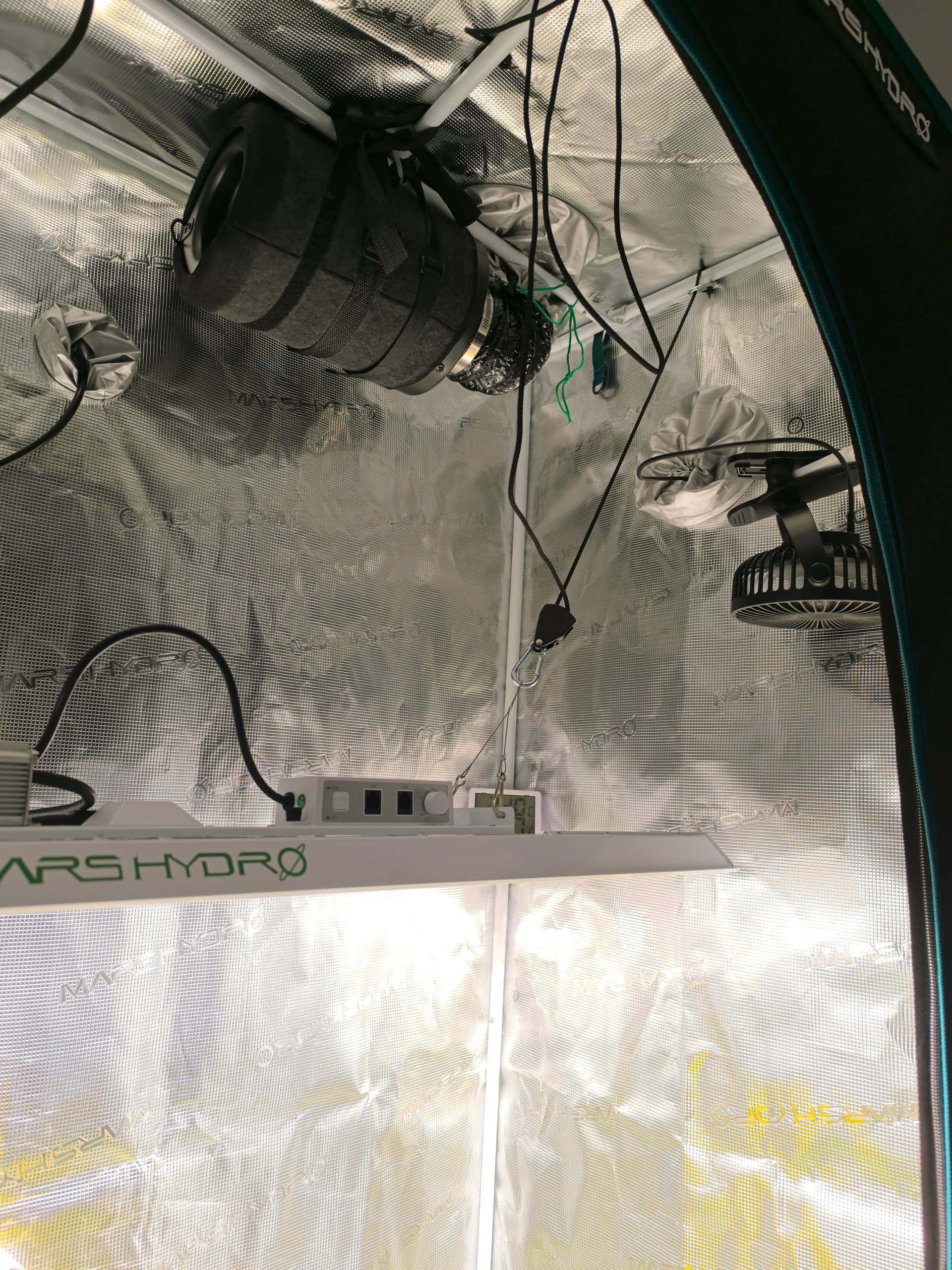 Mars Hydro TSL2000 is die Lampe und ca 40cm Abstand