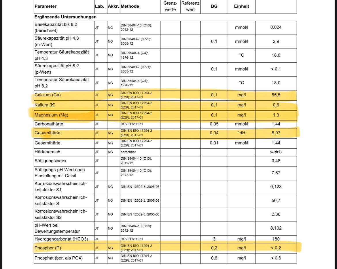 Jetzt kann’s du deine Wasser Werte in eins der Dünger rechen Programme eingeben , gibt’s hier in Forum.