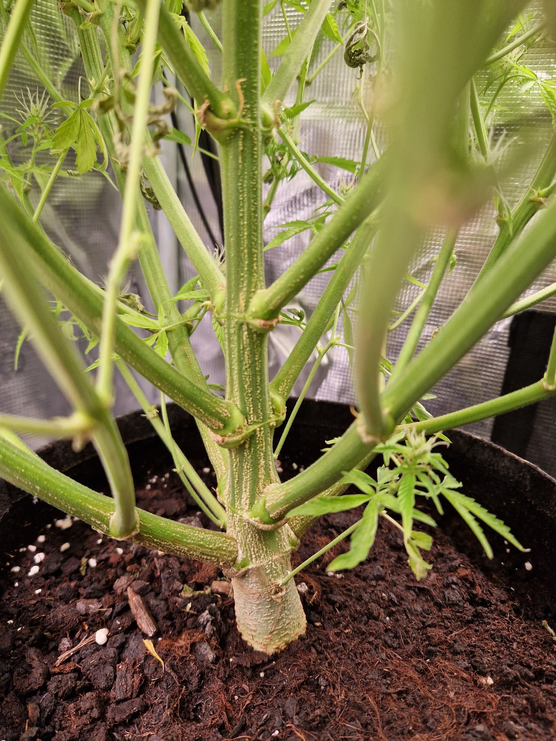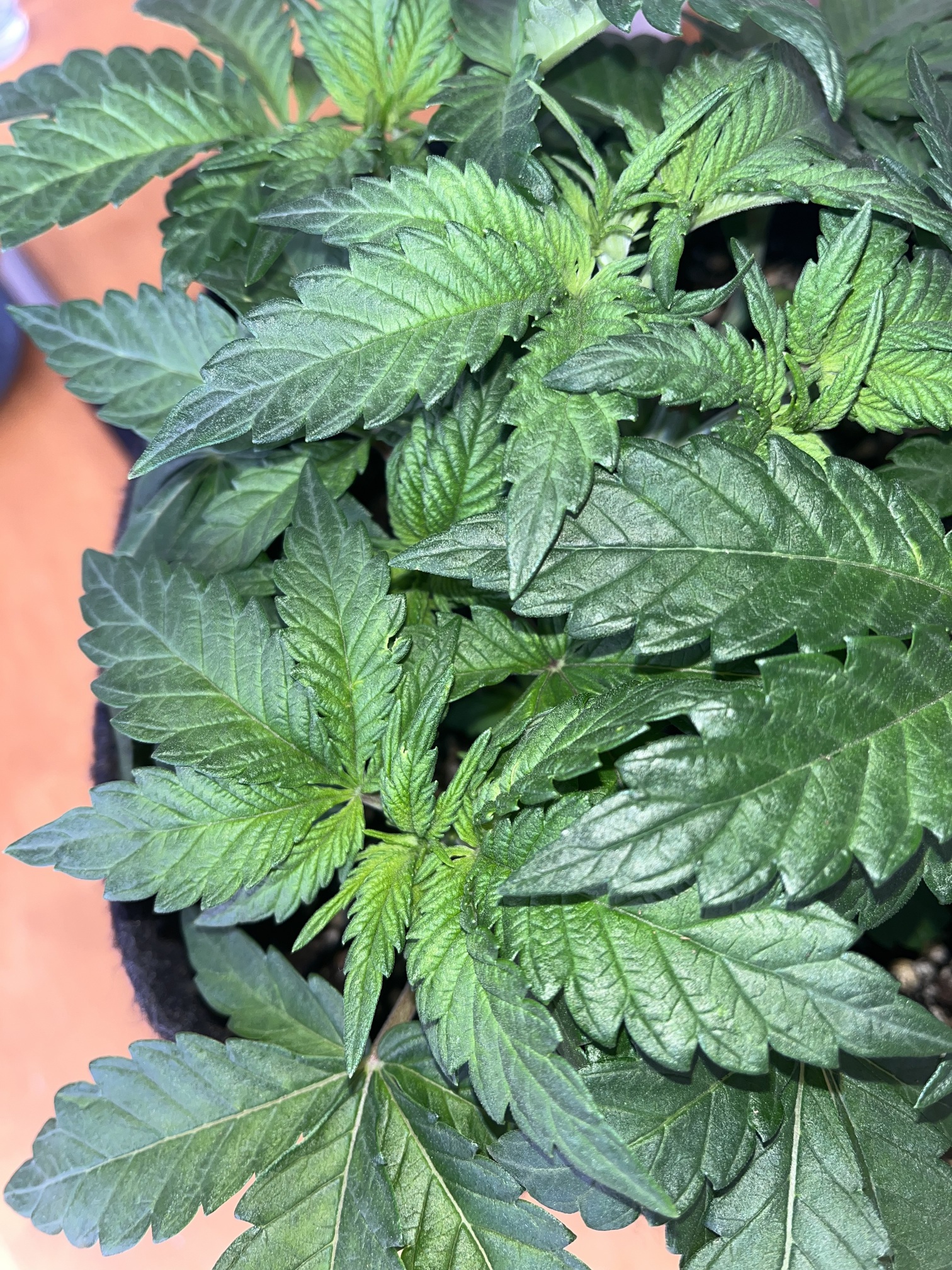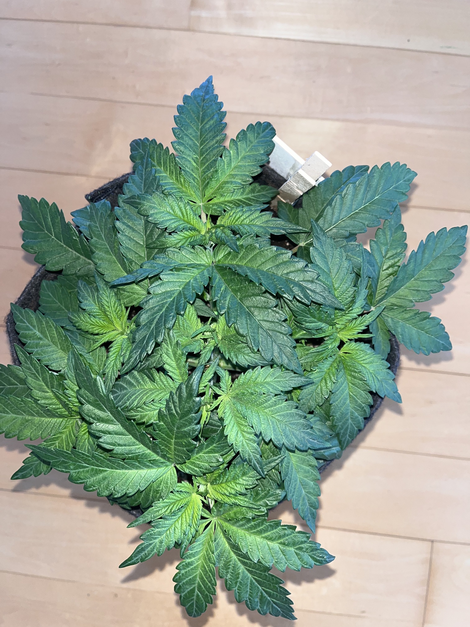 Ich habe sie vor 8Tagen in den Endtopf getopft mit BB LightMix und im unteren Viertel mit BB Allmix (da LightMix leer war). Ich weiß der ist vorgedüngt. Aber das bisschen unten im Topf sollte doch nicht zusätzlich so reinhauen? Habe normal mit Wasser, Bittersalz und CalMag nach Funus Rechner angegossen und beim letzten Mal Gießen wieder Dünger benutzt (GreenPower 5in1 von S&R) mit dem halben Schema für Blütewoche 1, denn ich habe sie am selben Tag auf 12/12 umgestellt.