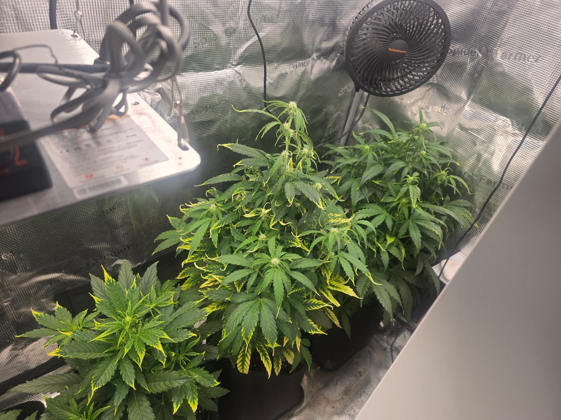 Ansonsten scheints den Mädels gut zu gehen. Primus, das Sorgenkind, ist weiterhin Gelb Grün aber streckt sich wie hölle - wächst und produziert Buds. Die zweitgrößte fängt jetzt grade an Buds zu prouzieren…