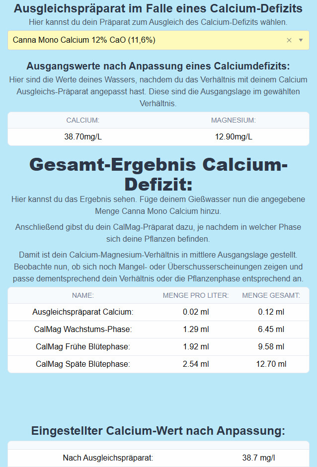 Ist es bei der geringen Menge überhaupt notwendig was auszugleichen? Ich frage jetzt nur wegen dem Calcium-Präparat. CalMag kommt natürlich mit in die NL.