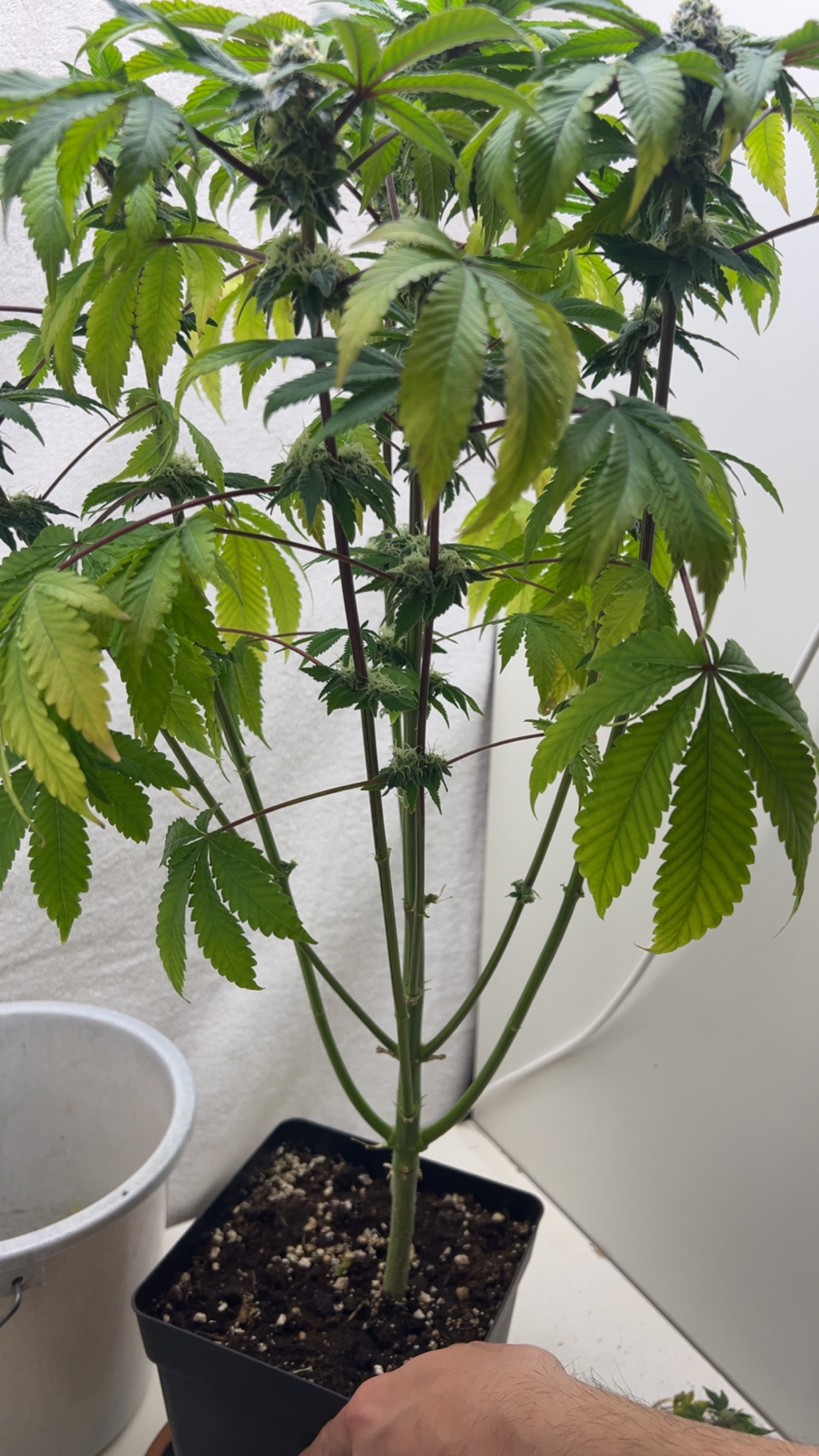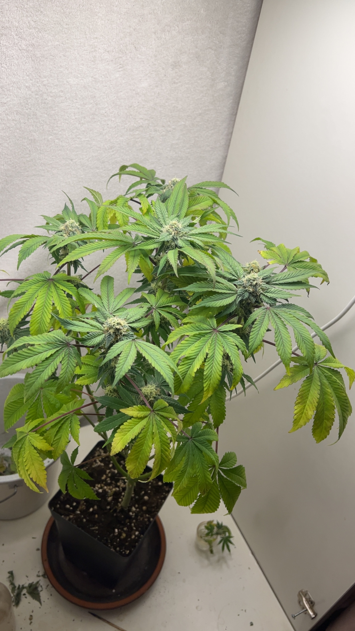 Sie ist jetzt 80 tage alt vom keimling und seid tag 35 in der blüte. Es war ein unbekanntes bah seed dachte aber sie ist weiblich jetzt kommen da komische unidentifizierbare dinge für mich an der blüte, die blätter sind schlaff und werden gelb und die stängel sind schon länger lila. Mein wasser mit dünger etc mischt mir ein kollege an der etwas Ahnung hat ich hoffe ihr könnt mir weiterhelfen wie ich die kleine retten kann:)