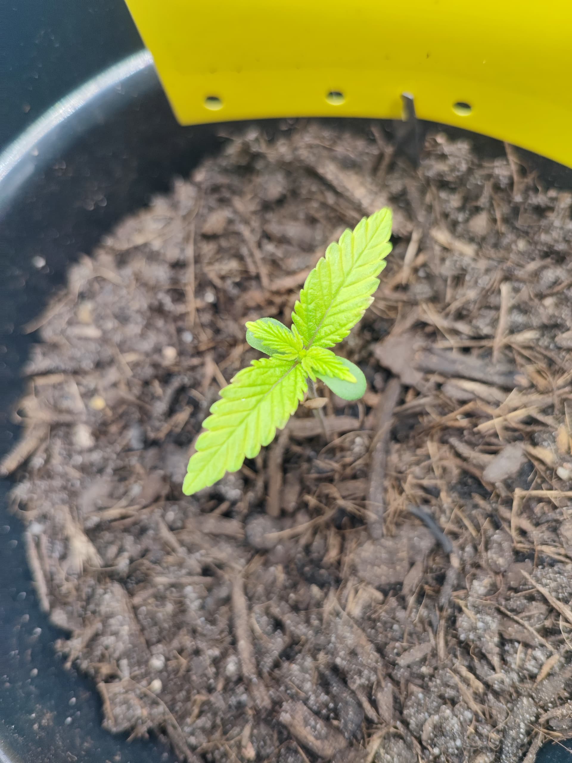 Erde ist eine Anzuchterde in 2 l Töpfen, wollte sie umtopfen in 20 l Töpfe mit Light Mix. Weiß nicht, ob sie vllt mittlerweile nicht mehr genügend Nährstoffe haben (hab noch nicht gedüngt), bin mir aber auch unsicher, ob sie mit der Größe bereit sind für schärfere Erde??