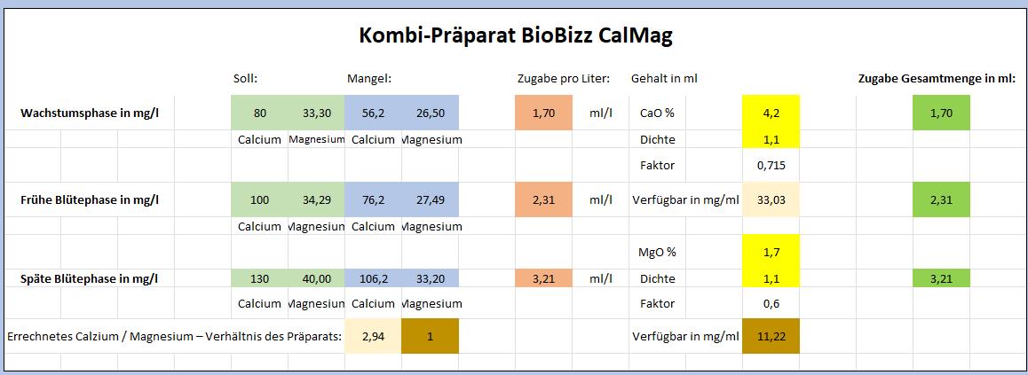 Ich baue auf Biobizz an und hab mir das CalMag von BioBizz geholt und möchte gern wissen wieviel ich davon in mein Gießwasser geben soll.