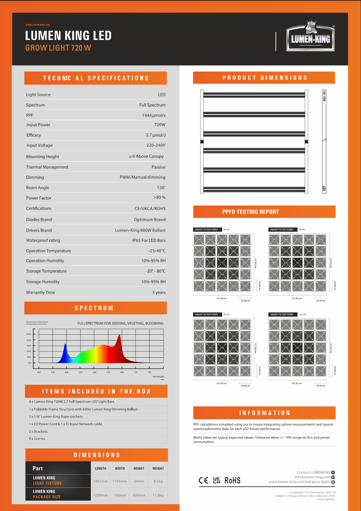 Ich besitze eine lumen King 720 Watt in einem 120x120x200 Zelt.