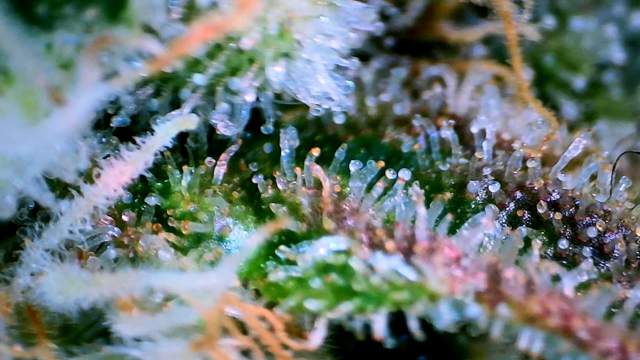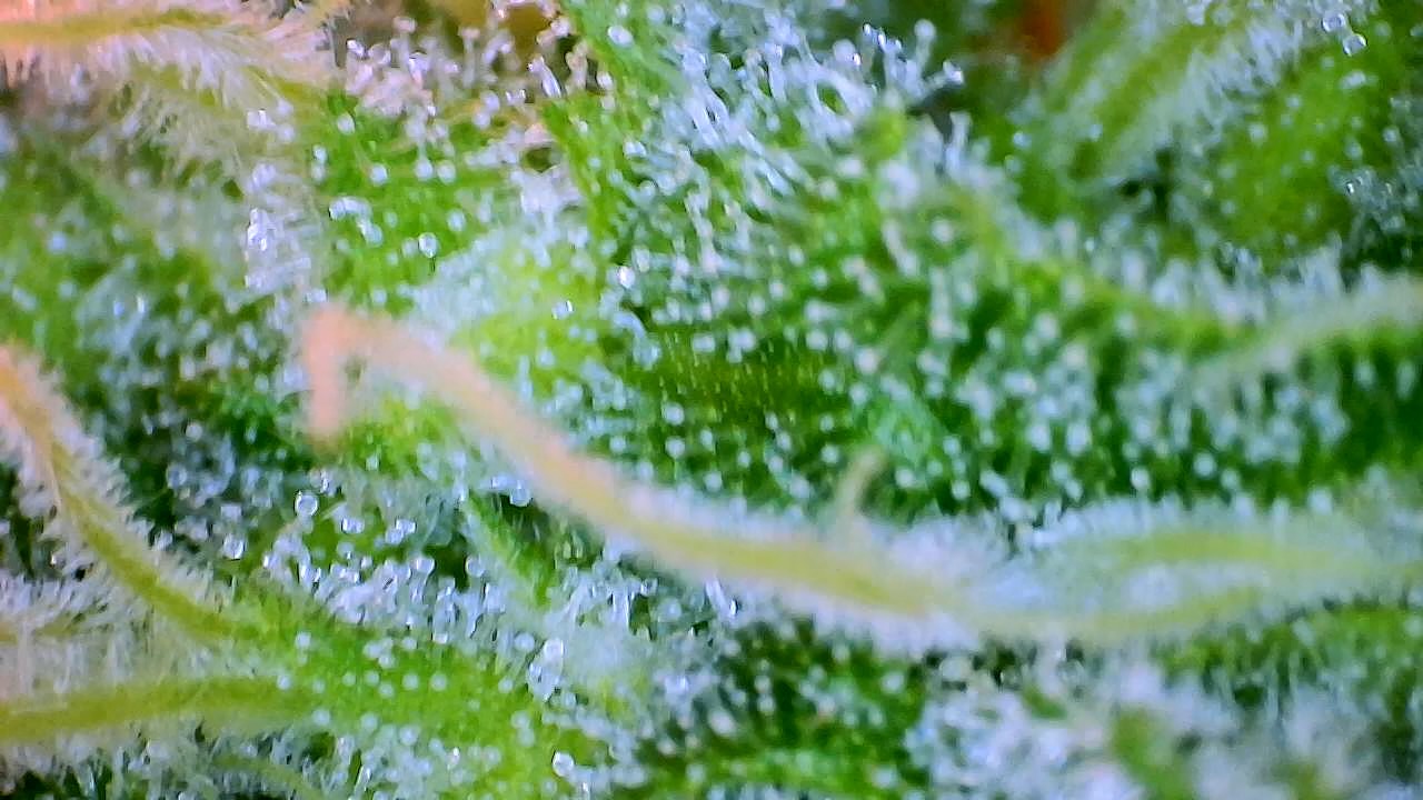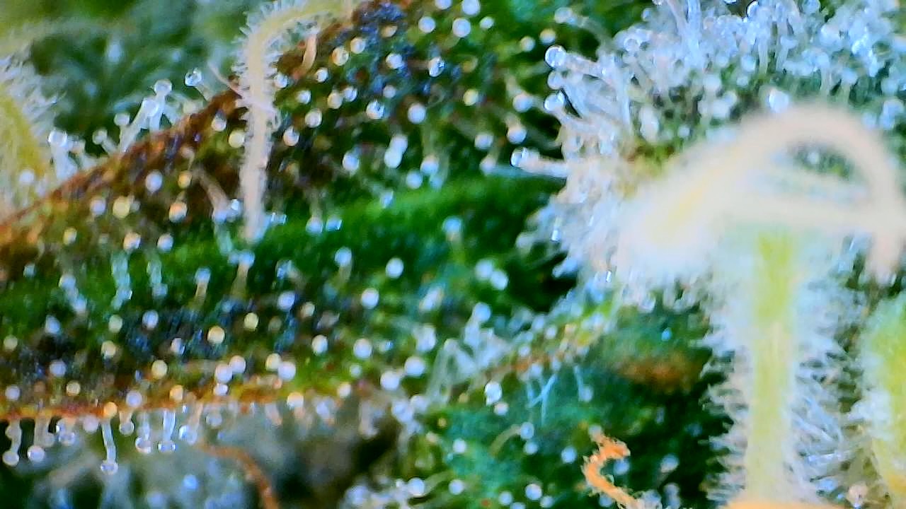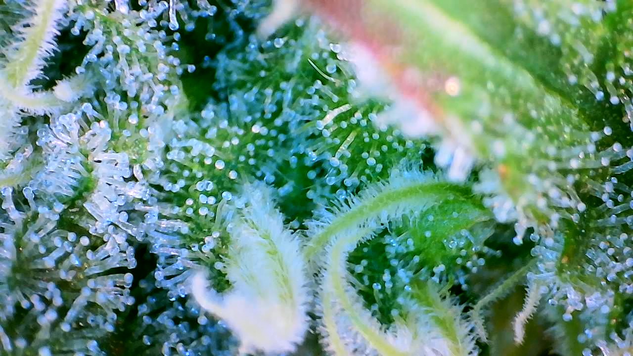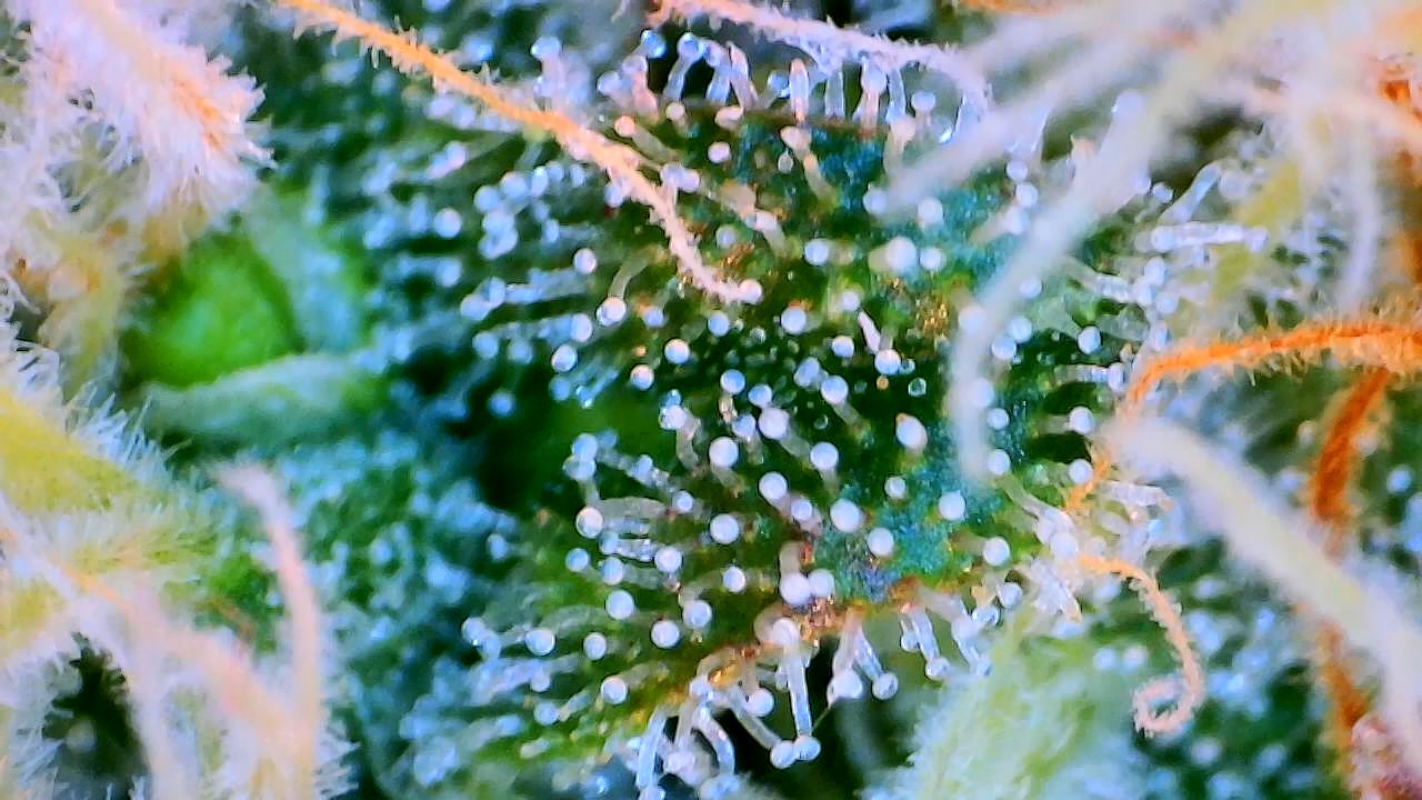 „Da es unmöglich ist, ein Produkt mit 100% milchigen Harzdrüsen zu erhalten, ist die Faustregel, zu ernten, wenn rund 85% der Trichomen milchig, 10% klar und 5% bernsteinfarben sind.“