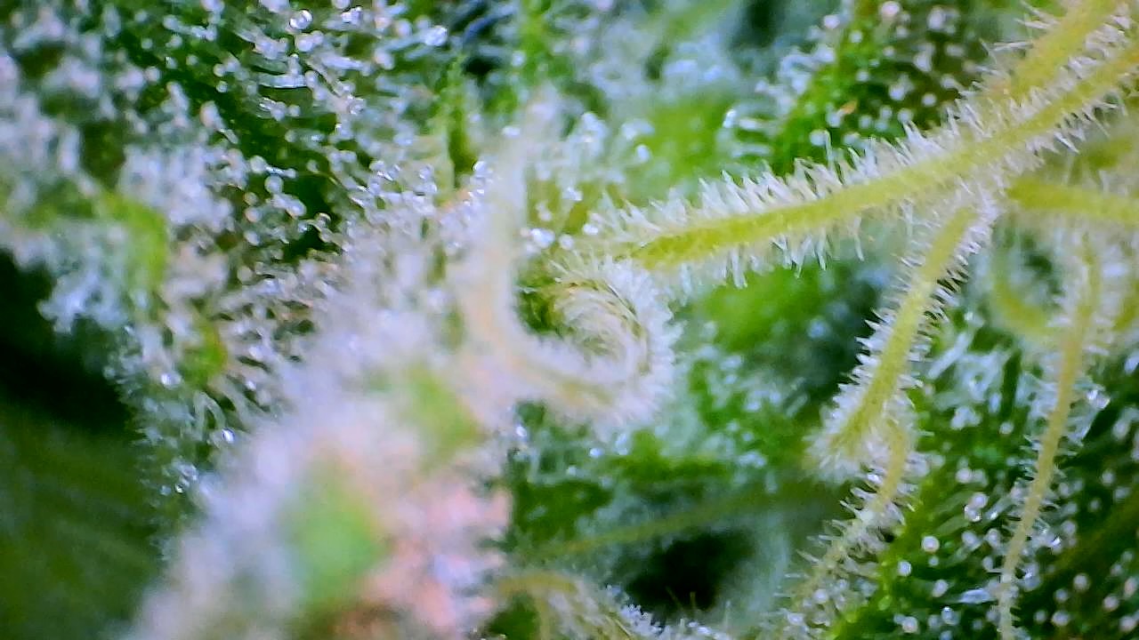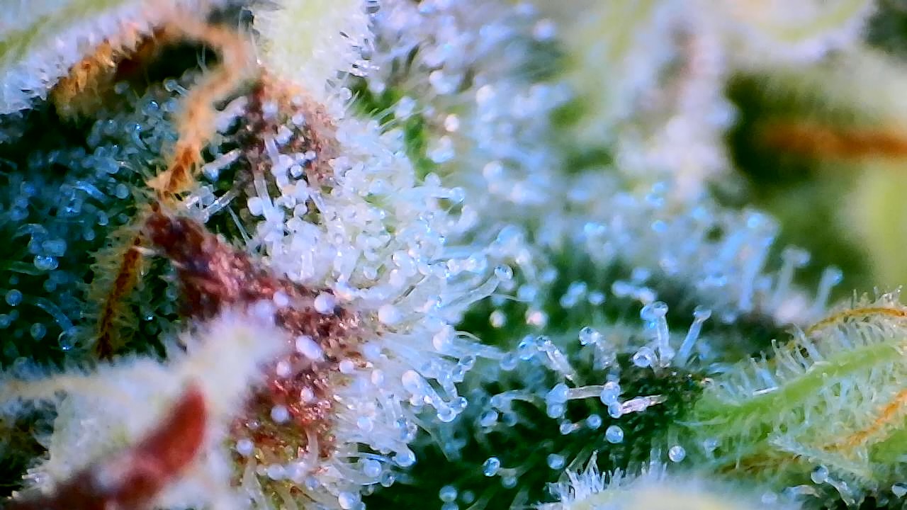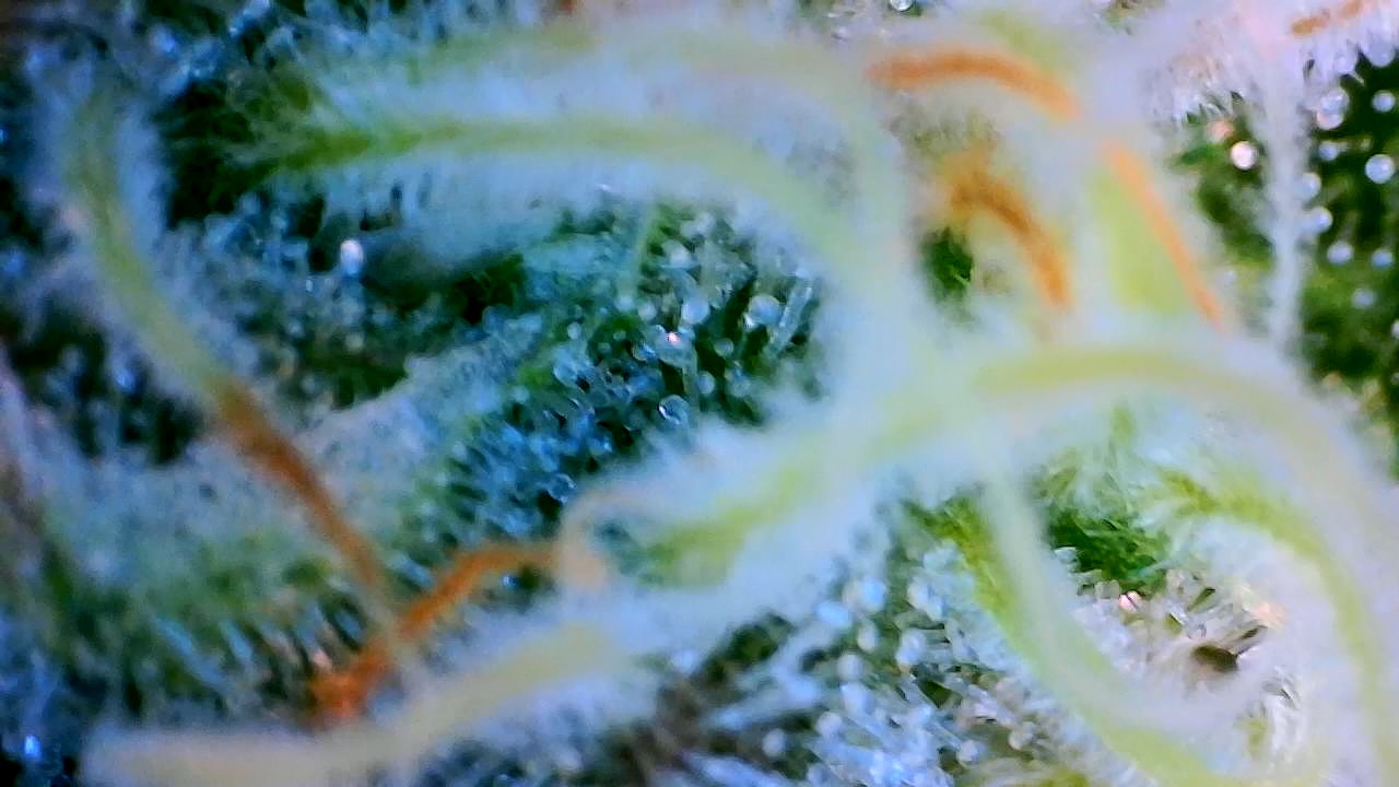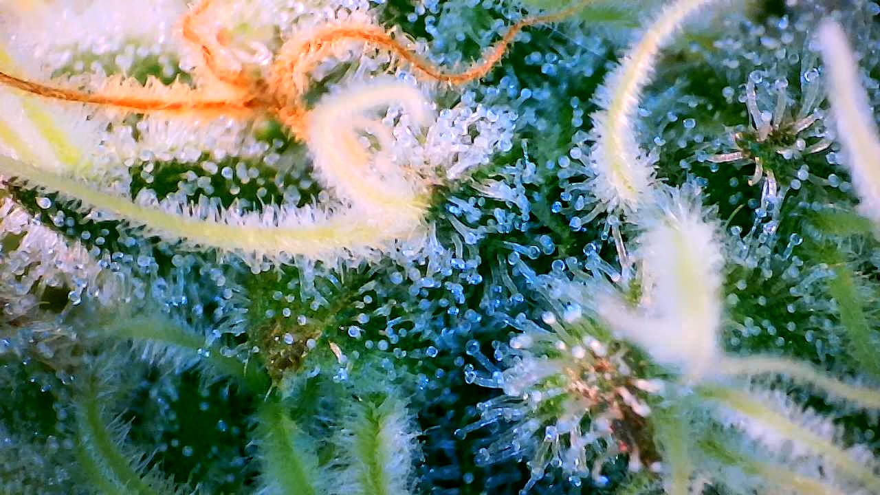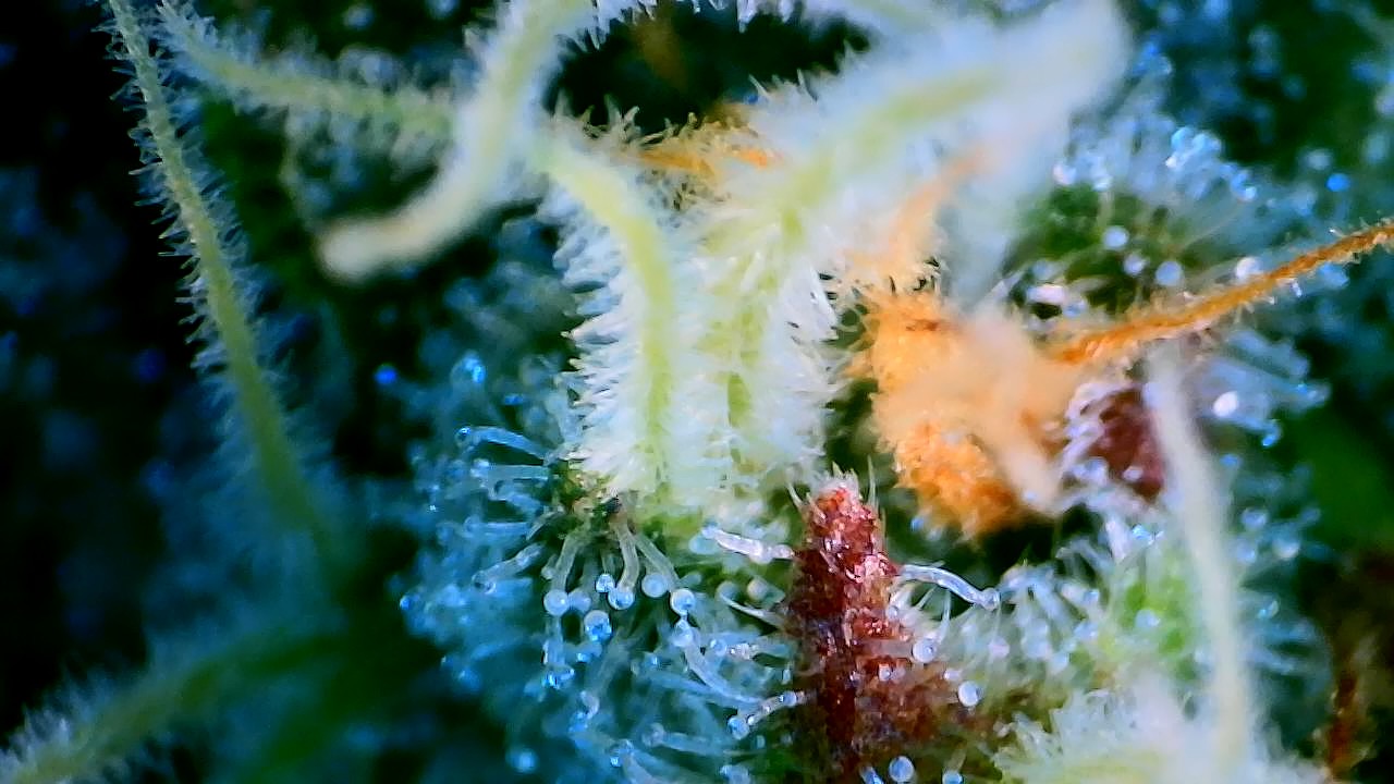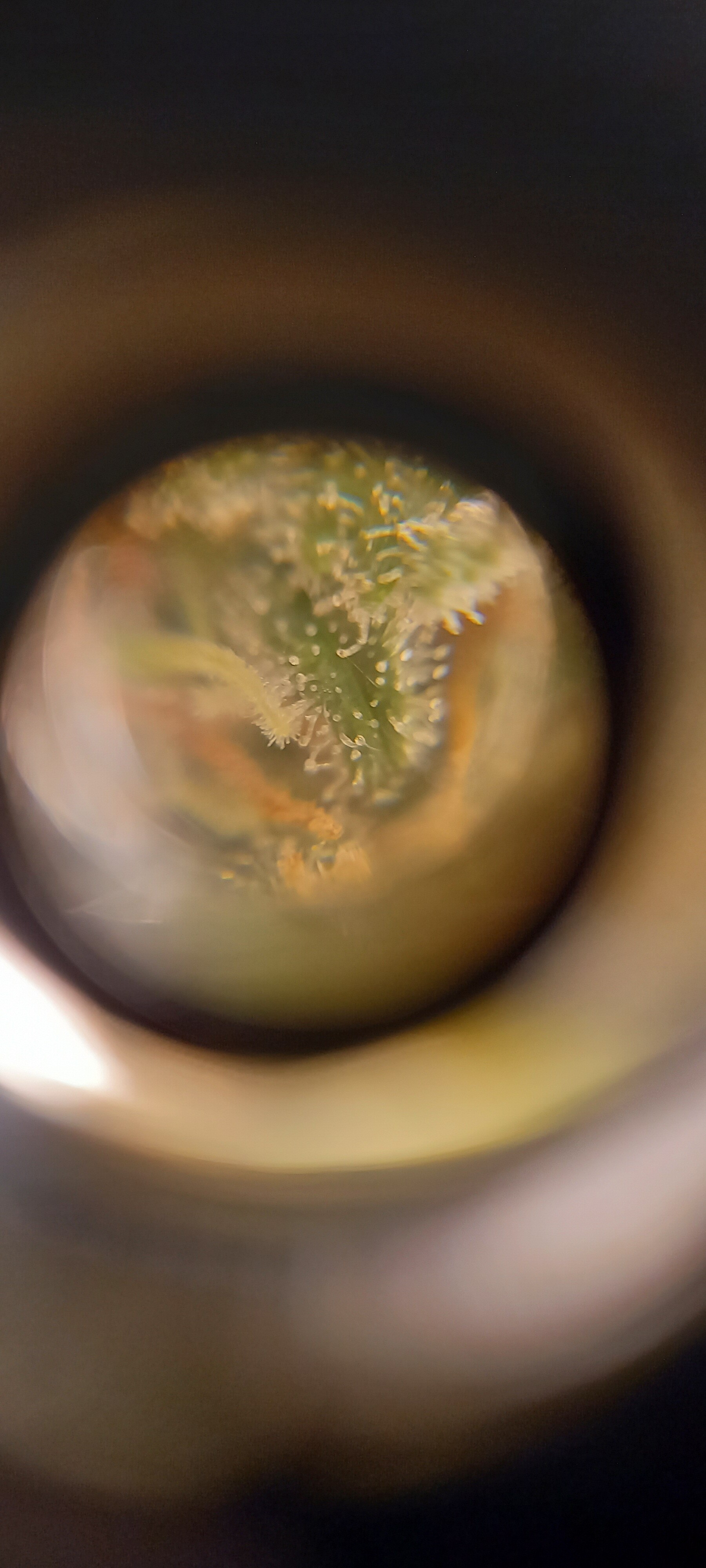 So wie in meinem Bildchen sieht man die Härchen auf den Stigmen, da kommen keine Trichome, ringsrum auf den Blättern sieht man sie aber bei mir …alles fensterklar…Ernte in ferner Zukunft … Es dauert…