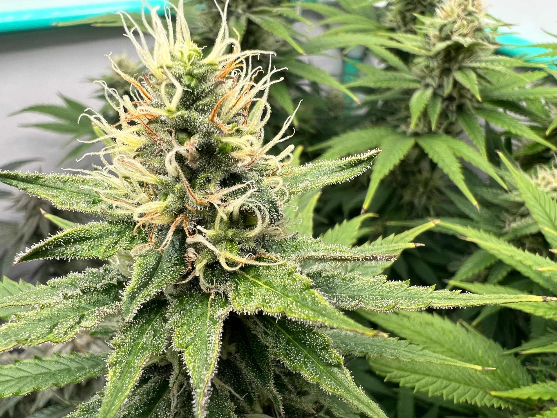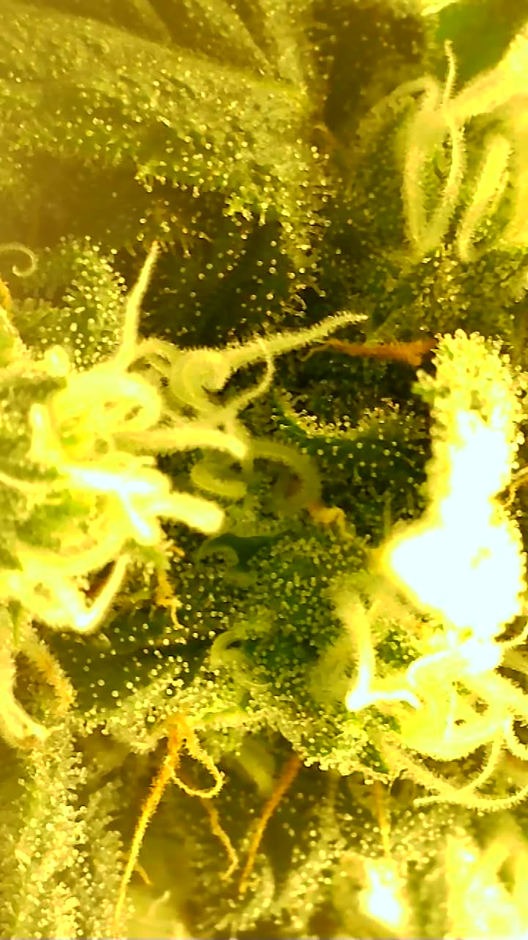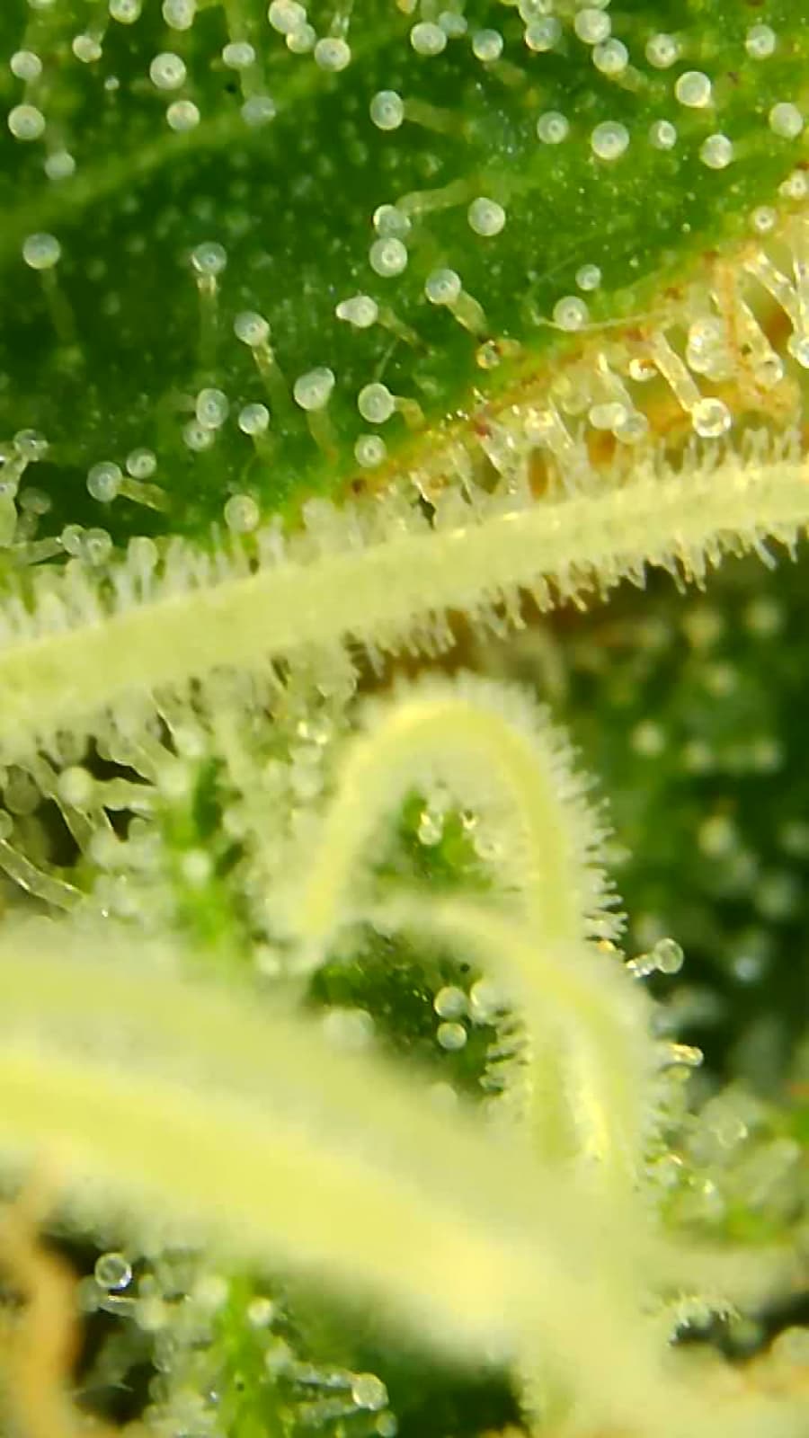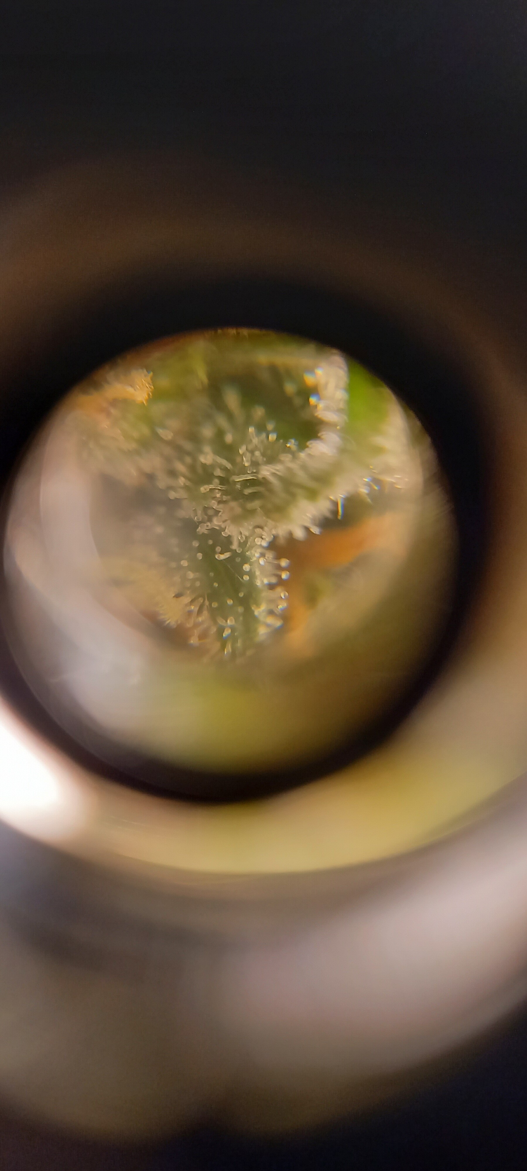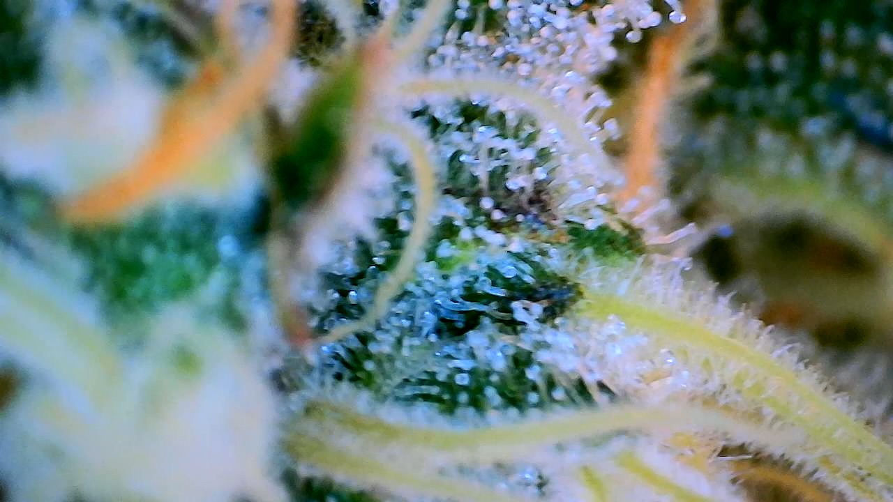 So wie in meinem Bildchen sieht man die Härchen auf den Stigmen, da kommen keine Trichome, ringsrum auf den Blättern sieht man sie aber bei mir …alles fensterklar…Ernte in ferner Zukunft … Es dauert…