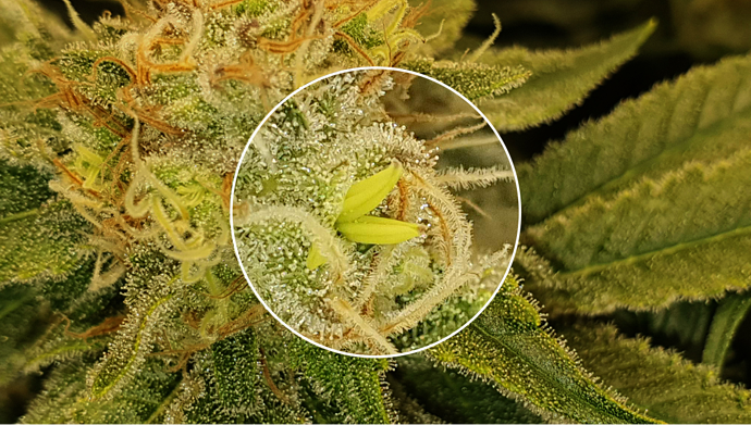 Das passiert, weil einige Strains Bananen wachsen lassen, wenn du sie irgendwann nach der [Erntezeit] leben lässt, sodass sie im letzten Versuch, Samen zu produzieren und die Spezies zu verewigen, Bananen wachsen lassen und versuchen, sich selbst zu bestäuben (aka Rodelization). Rodelization ist nicht so schlimm, wie wenn deine Pflanze hermaphroditisch wird, weil die Buds schon lange über den idealen Zeitpunkt für die Bestäubung hinaus sind, sodass es höchstwahrscheinlich nicht viele Samen geben wird, aber du wirst die Bananen bei der Ernte entfernen müssen.