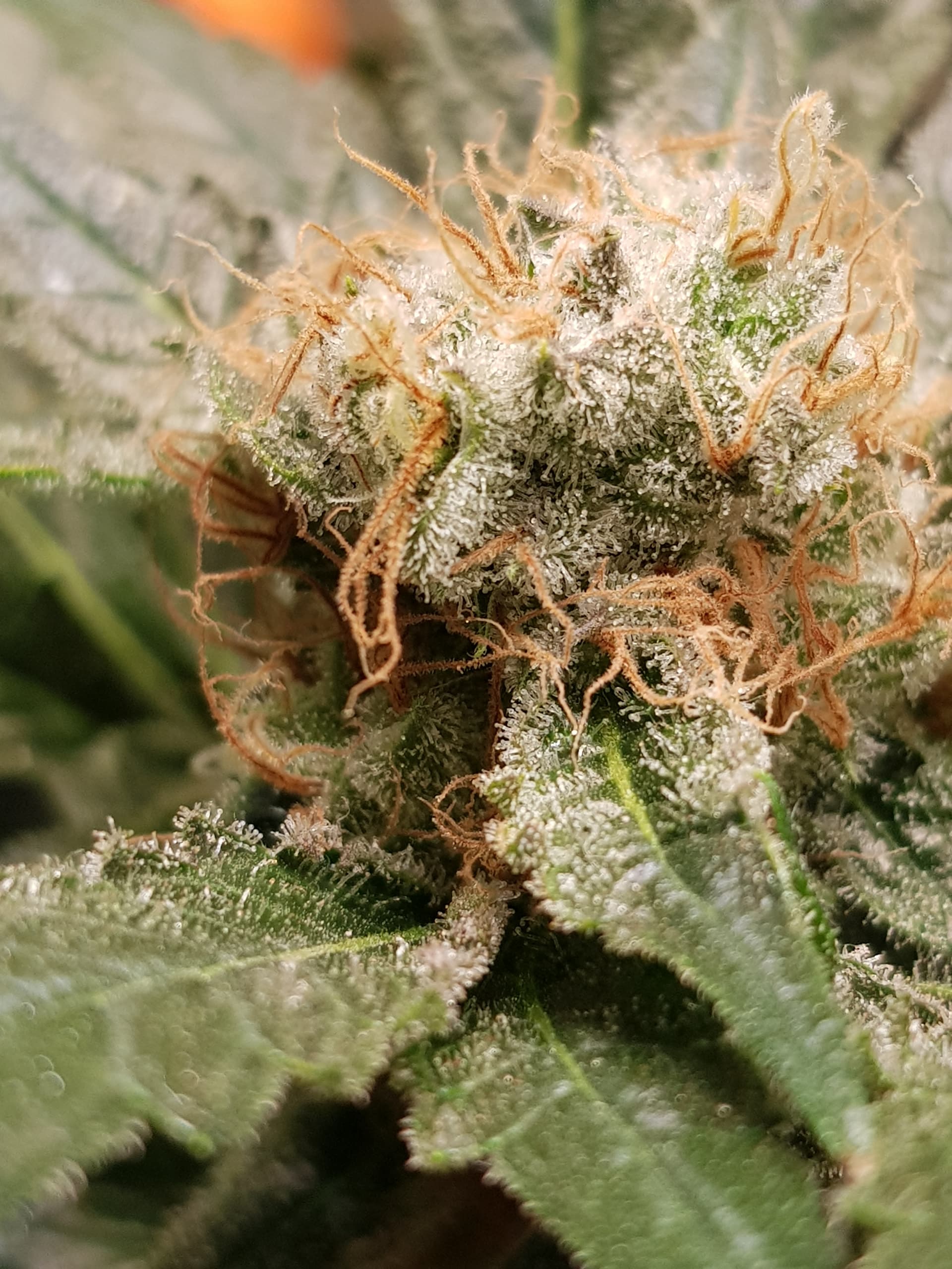 Ich denke aber das sie noch ein wenig braucht, jedoch hat sie auch schon einiges an Bernsteinfarbenen Trichomen. Der Rest ist jedoch gefühlt noch durchsichtig.