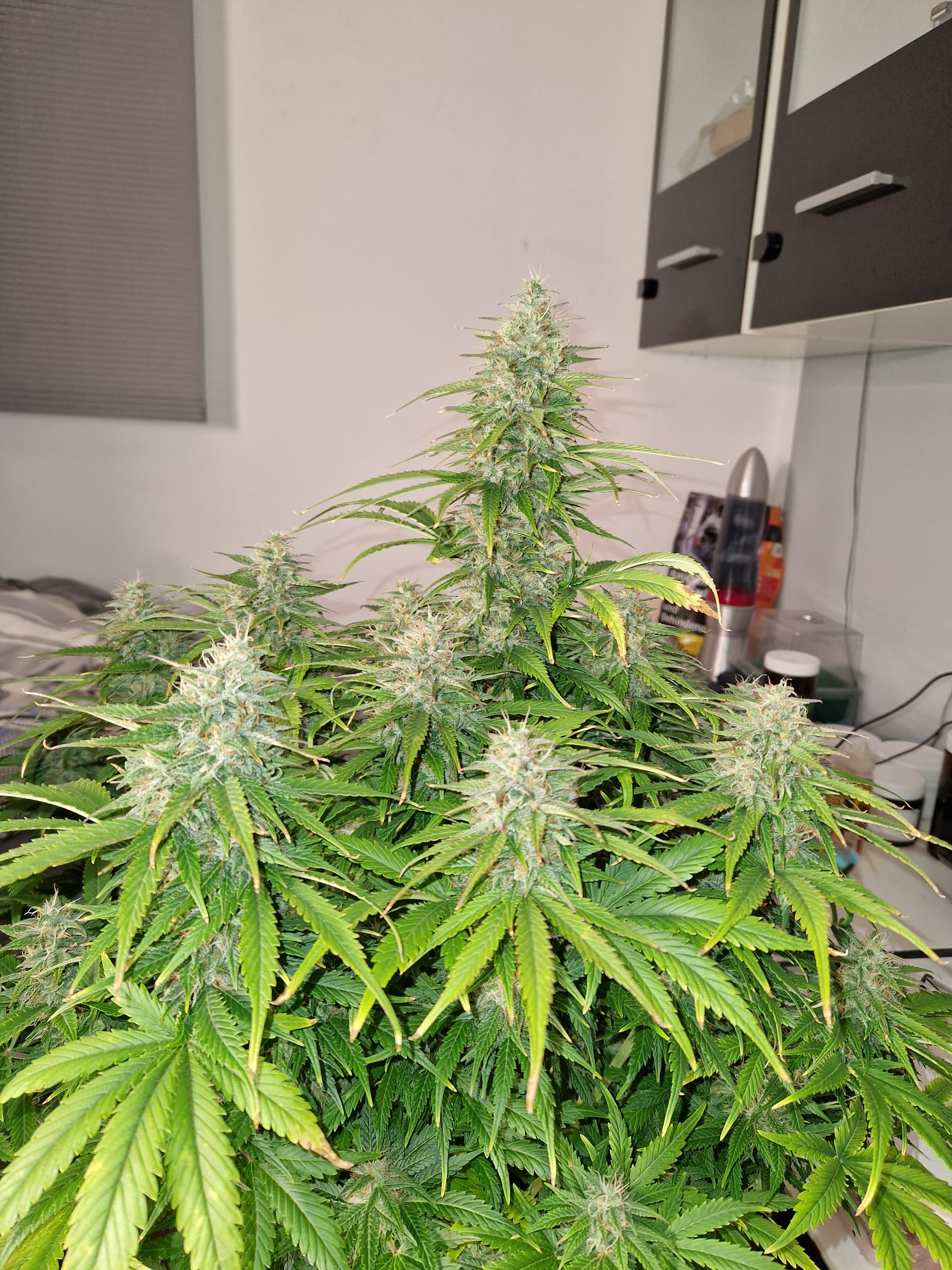 Bin jetzt seit heute in der 8. Woche. Laut SeedBank sind 6-7 Wochen Blüte angegeben. Habe die Stecklinge in Österreich gekauft (Water Melon Jam) im Laden haben sie 7-8 Wochen Blüte angegeben. Ich finde sie sehen schon gut aus, allerdings habe ich noch keine Bernsteinfarbenen Trichome entdeckt. Hab auch schon überlegt sie jetzt an der Pflanze sterben zu lassen und nicht mehr zu gießen bis zur Ernte. Ich hoffe das es alles mit dem Hochladen funktioniert, ist mein 1. Beitrag hier im Forum.Wenn’s meine Wären würde ich die Lampe dimmen und die Licht Stunden verringern auf 11/13 oder 10/14 und den Damen noch ne Woche Zeit geben