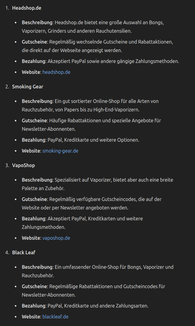 Kann mir jemand einen Headshop empfehlen inkl. Gutscheine und Bezahlung mit Paypal ?