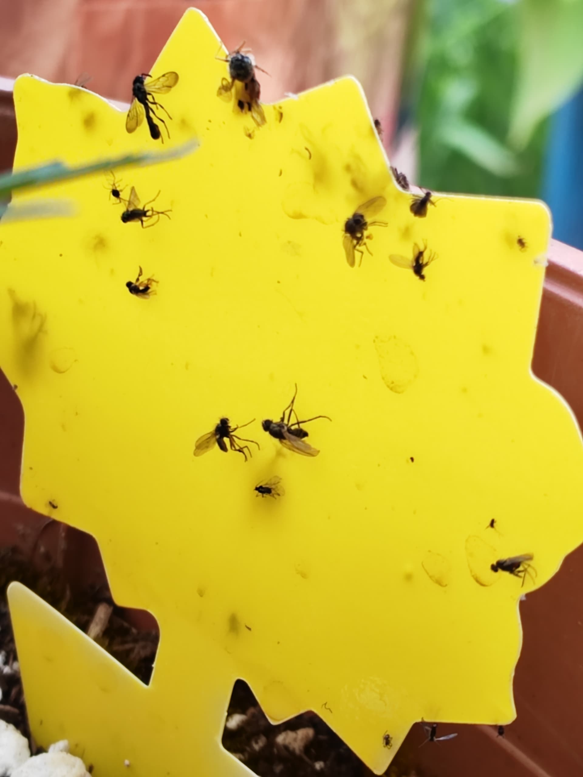 Der „Schaden“ erinnert mich an einen schwachen Befall mit ganz normalen Trauermücken. Gegen die gibt es ja mehrere einfache Bekämpfungsmethoden. Sie treten wohl da auf, wo feuchter Humusboden wie z.B. Blumenerde vorherrscht, vorzugsweise an geschützten Orten wie drinnen. Einfach mal ne Packung Gelbtafeln in der Drogerie kaufen und ein paar um die Pflanzen verteilen. Nach ein, zwei Tagen müssten da Trauermücken dran zu finden sein, falls es welche gibt.
