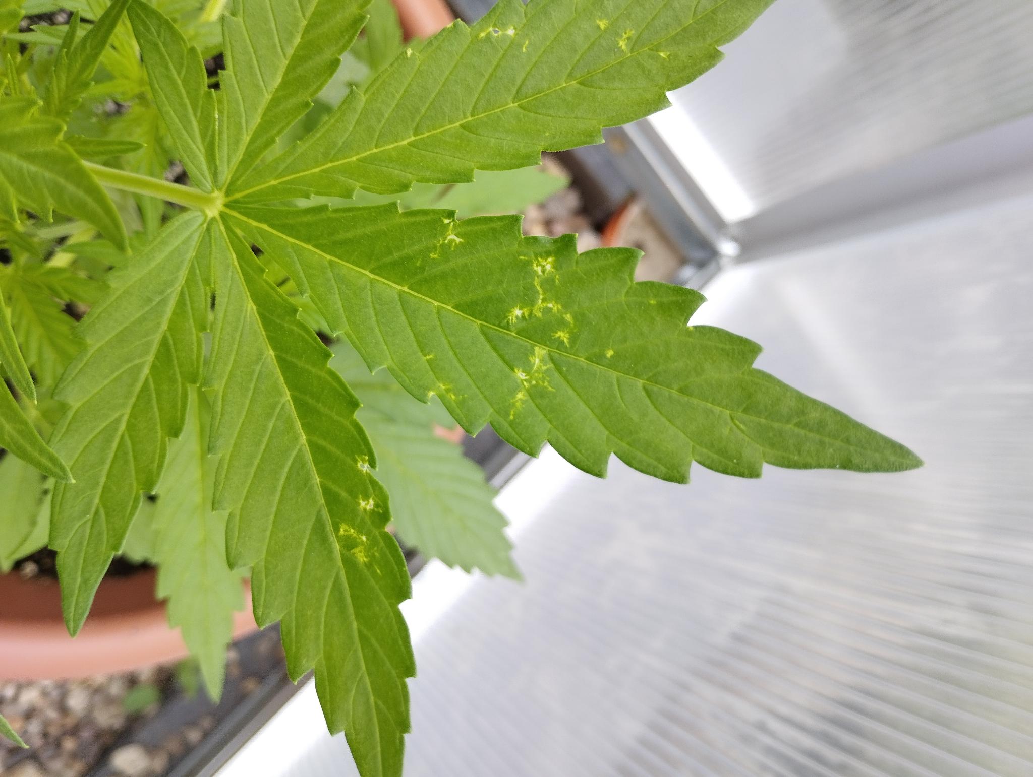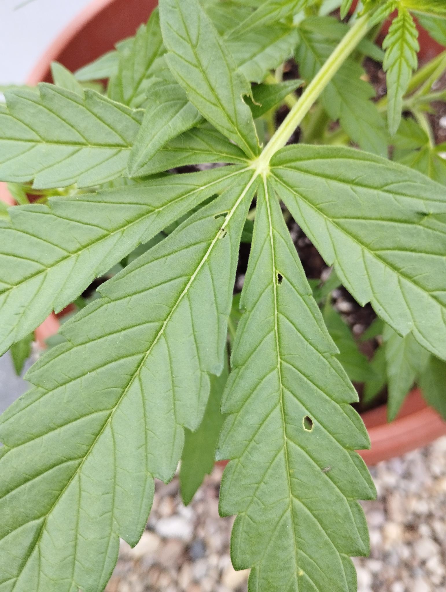 Moin… Ich habe jetzt zwei relativ junge Blätter mit diesen hellen Stellen. Was könnte das sein?