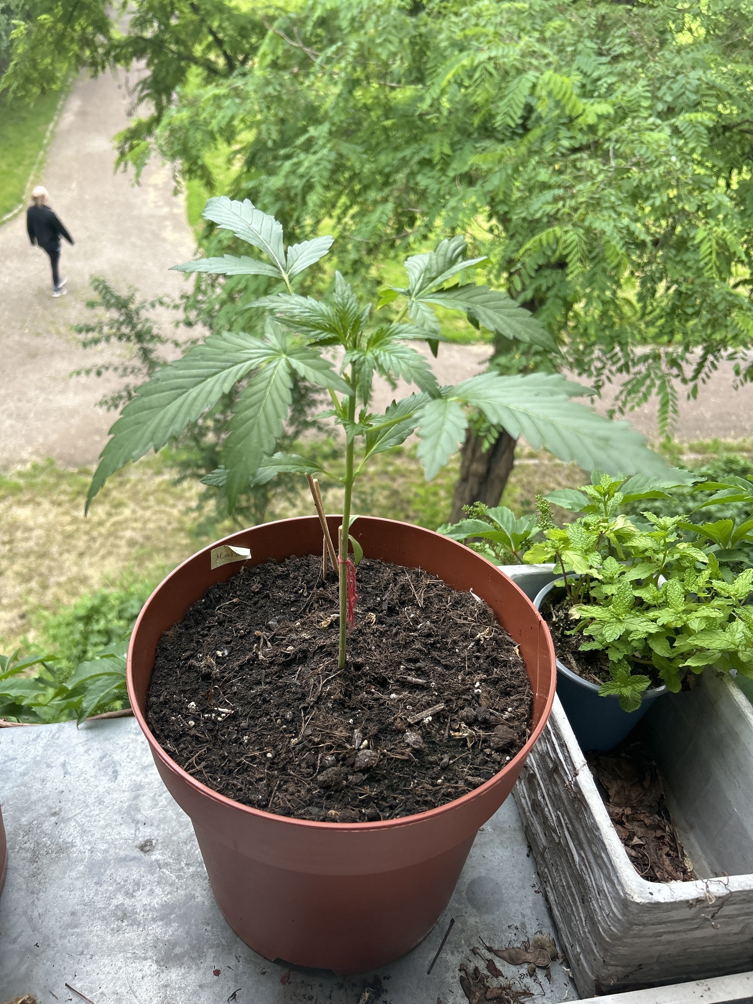 Aufgezogen habe ich sie in dem finalen 12L Topf indoor und als es warm wurde ging sie dann raus (Terrasse mit Glas überdacht und Seiten zu)