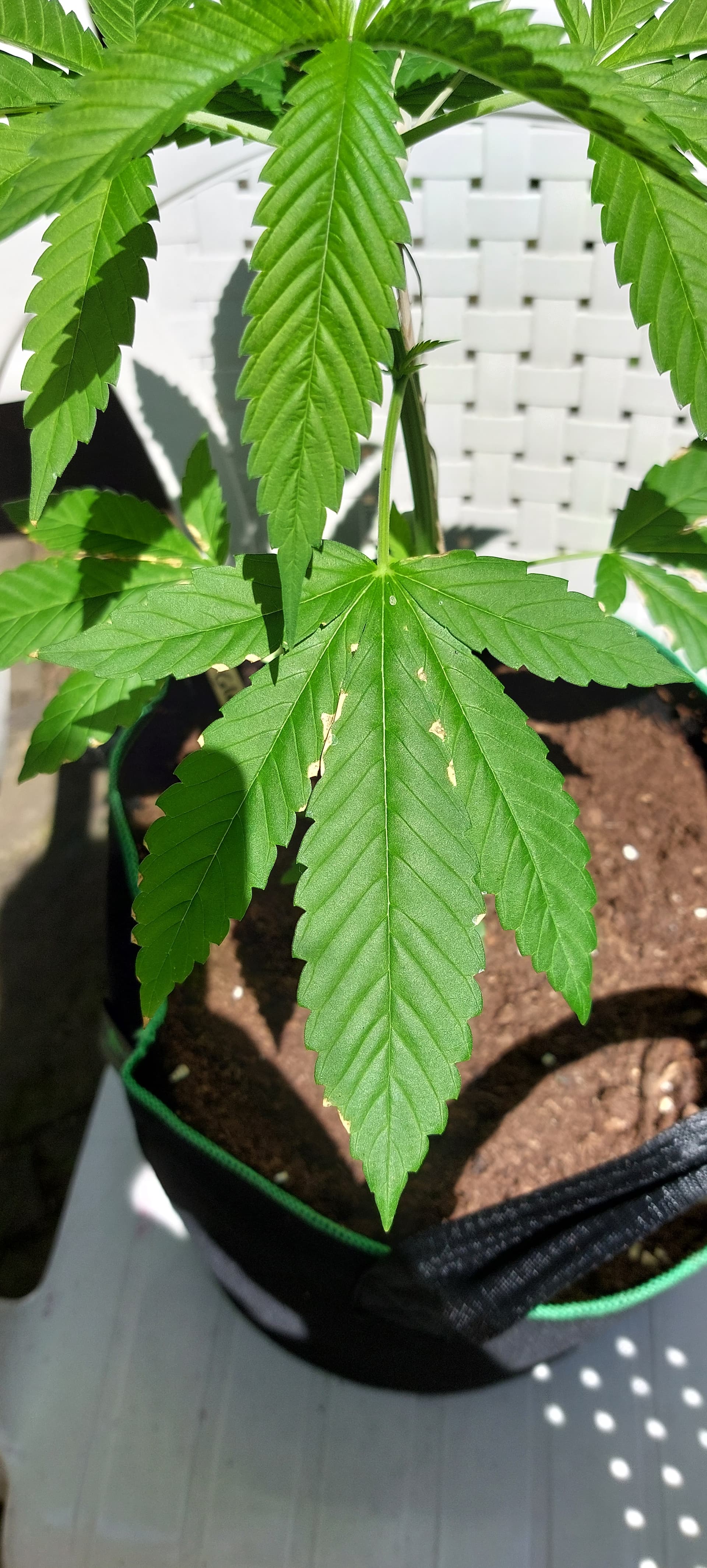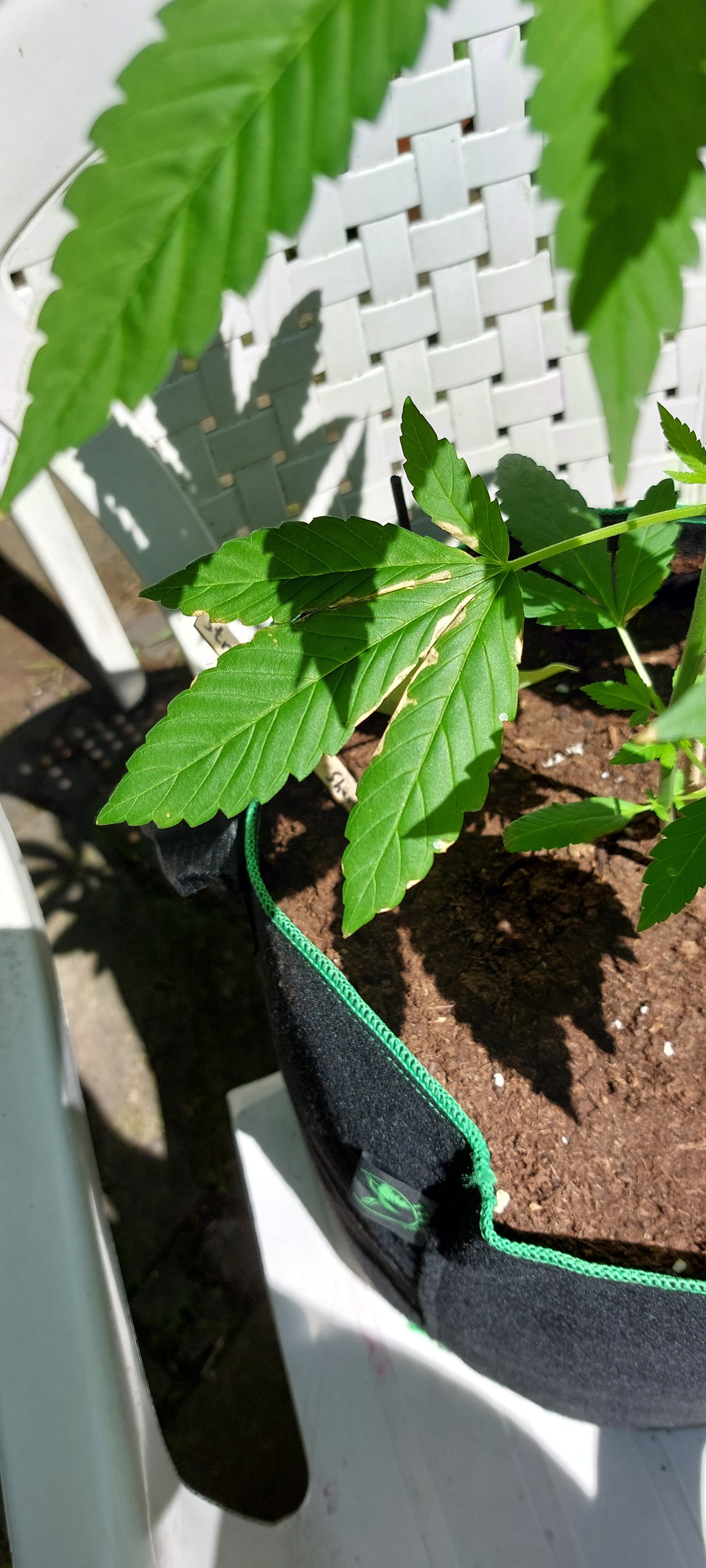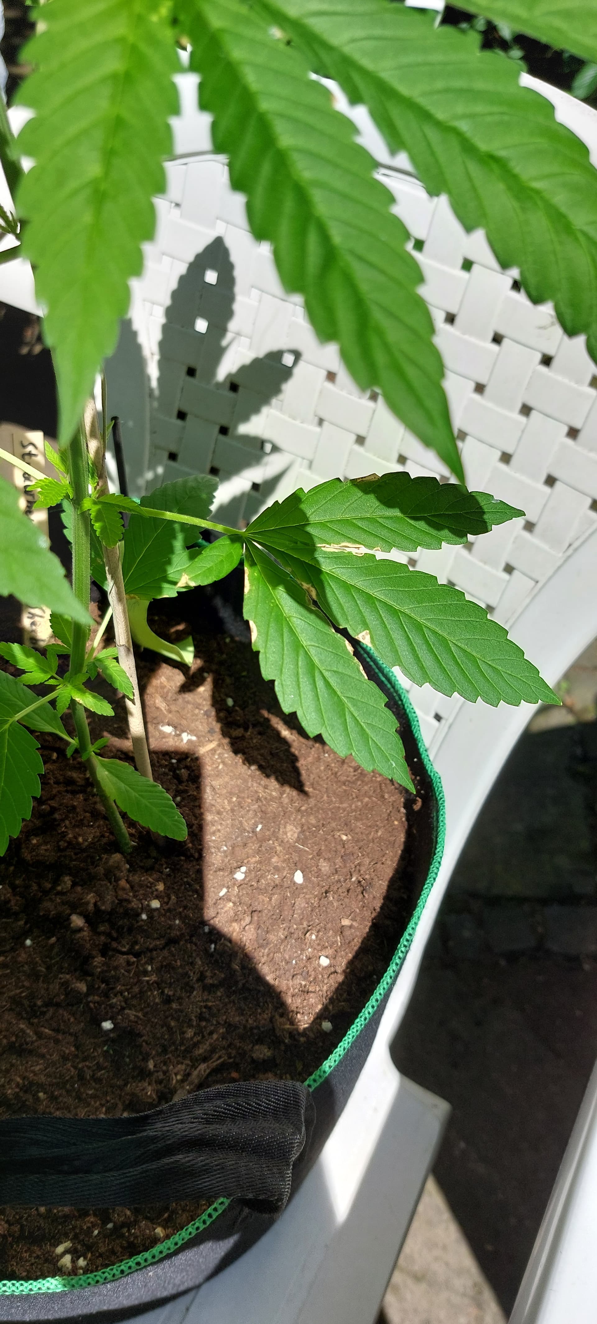 Leider macht meine fast 5 Wochen alte Strawberry Cola Sherbet von Sweetseeds (fast version) ein bisschen Probleme. Sie steht aktuell in einem 22 L Stofftopf in einer Mischung aus vorgedüngter Jiffy Erde und Grünschnitt Kompost Erde.