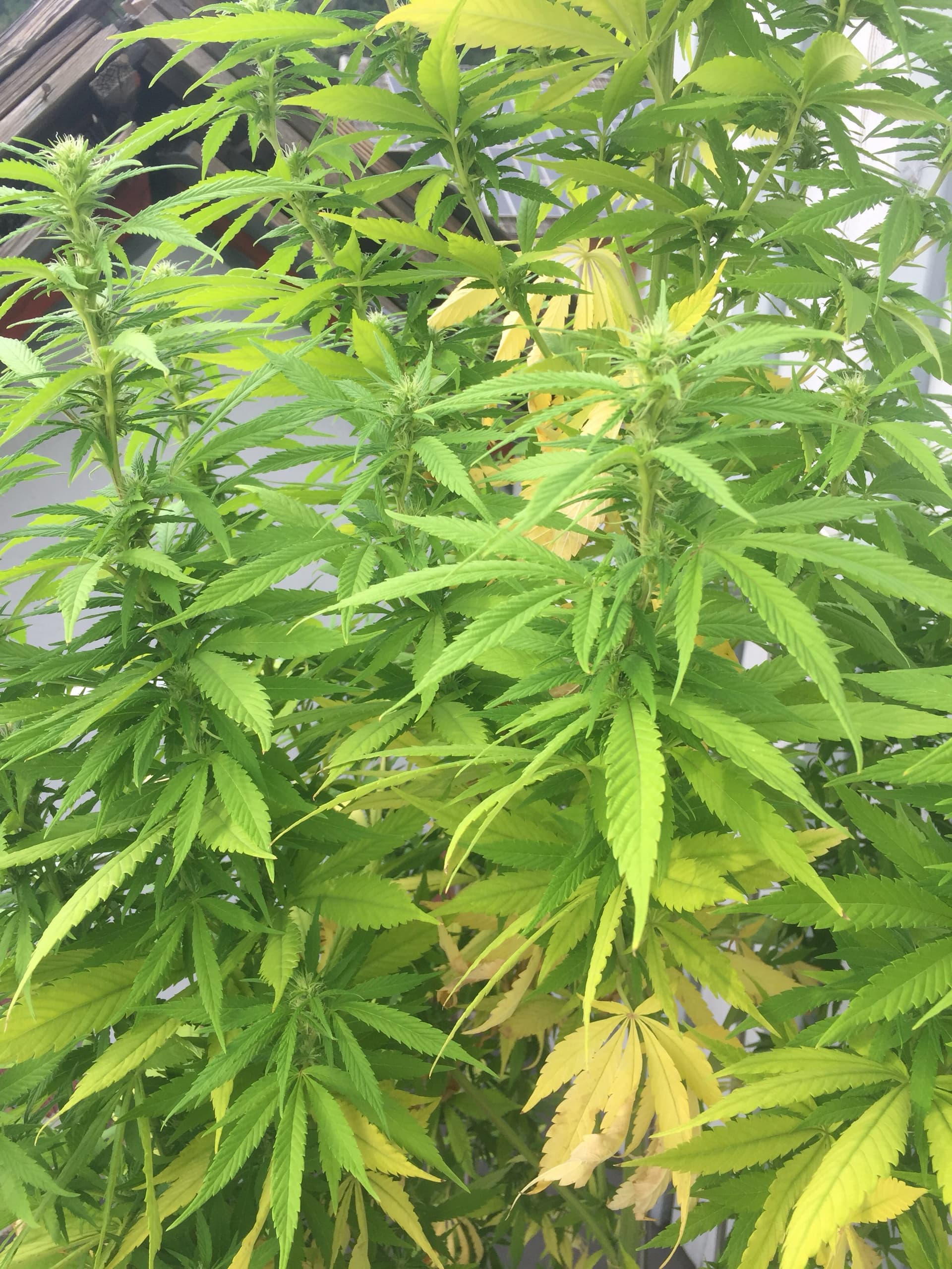 Nun stehen noch meine beiden photoperiodischen Damen draußen und beginnen mit der Blüte. Als Schutz vor die nun bald zu erwartenden mieseren Wetterverhältnisse sind sie in ein Foliengewächshaus gewandert, sehen beide m.E. super gesund aus.