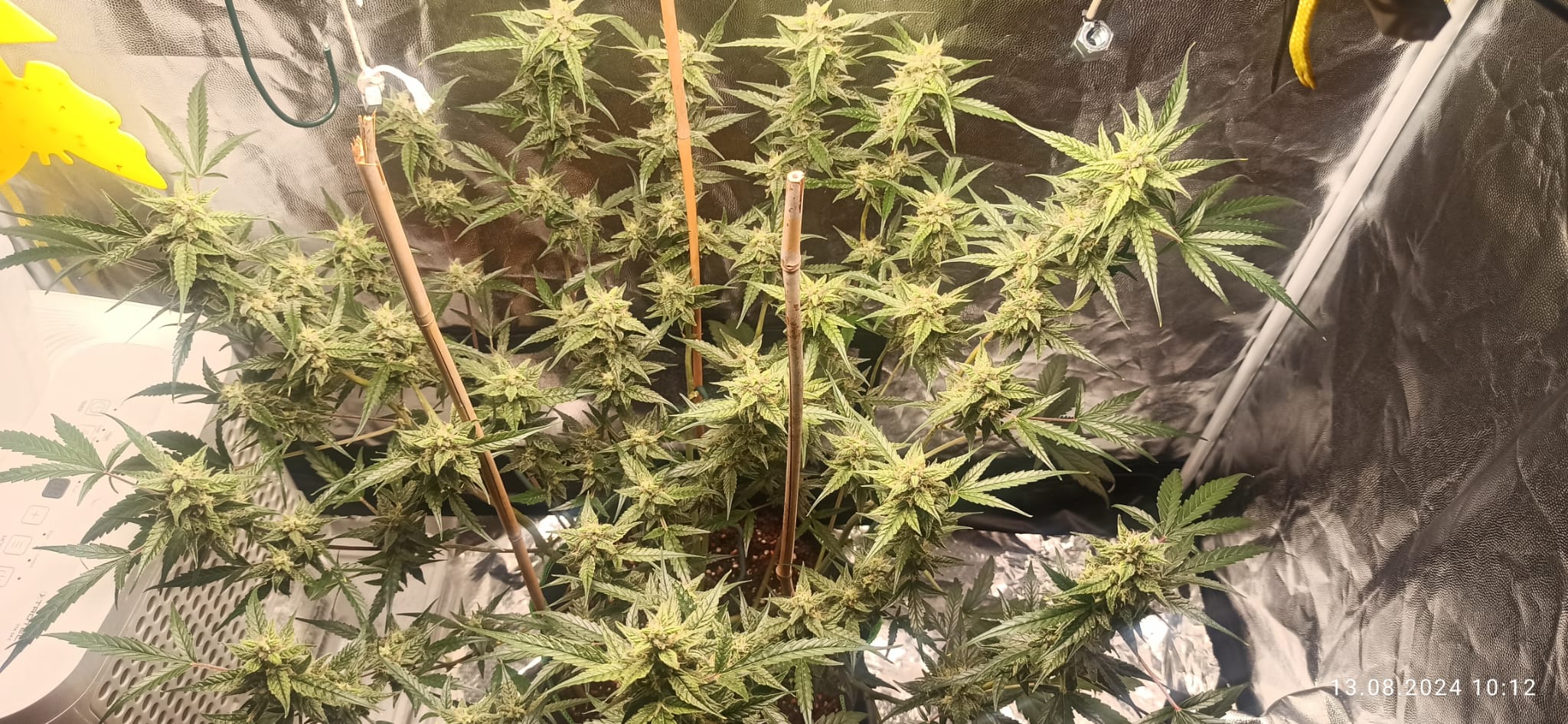 Gedüngt habe ich mit dem Düngeset von BioCanna und und habe die Hälfte der Werte auf dem Düngeplan verwendet. Ich hatte in einem grow früher mit dem selben Dünger beim genauen halten an den düngeplan eine überdüngung. Daher dieses Mal lieber weniger. D.h. ich habe für vegetatives Wachstum gedüngt und 10ml Bio Vega auf 10l und 10ml Bio Rhizotonic auf 10 l Wasser gedüngt.