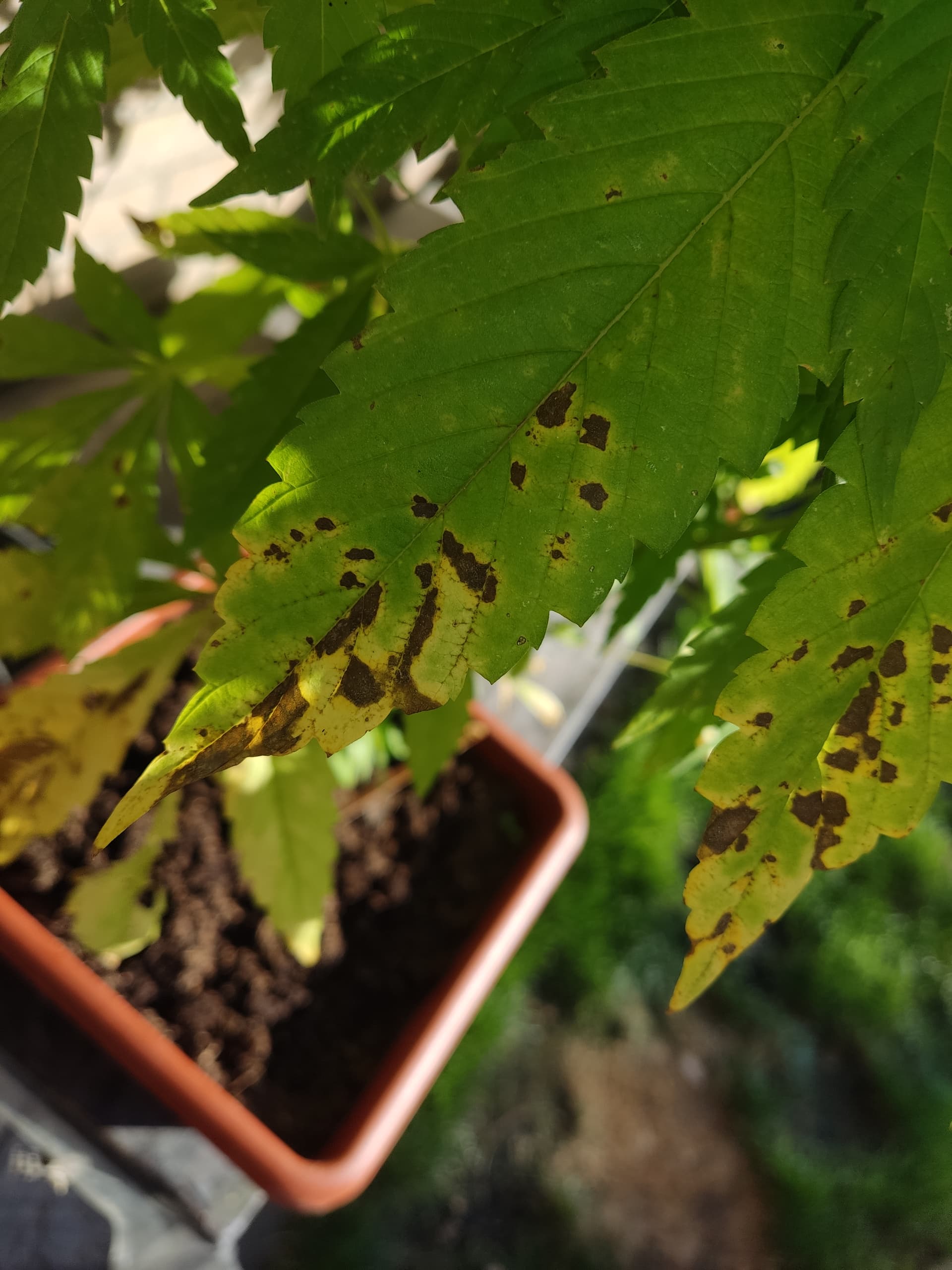 Ich bin neu im Thema Cannabis-Anbau und würde mich sehr freuen, wenn ihr mir helfen könntet. Und zwar breitet sich bei einer meiner Pflanzen dunkle Flecken aus, ich weiß aber nicht was das zu bedeuten hat. Kann mir ja jemand helfen?
