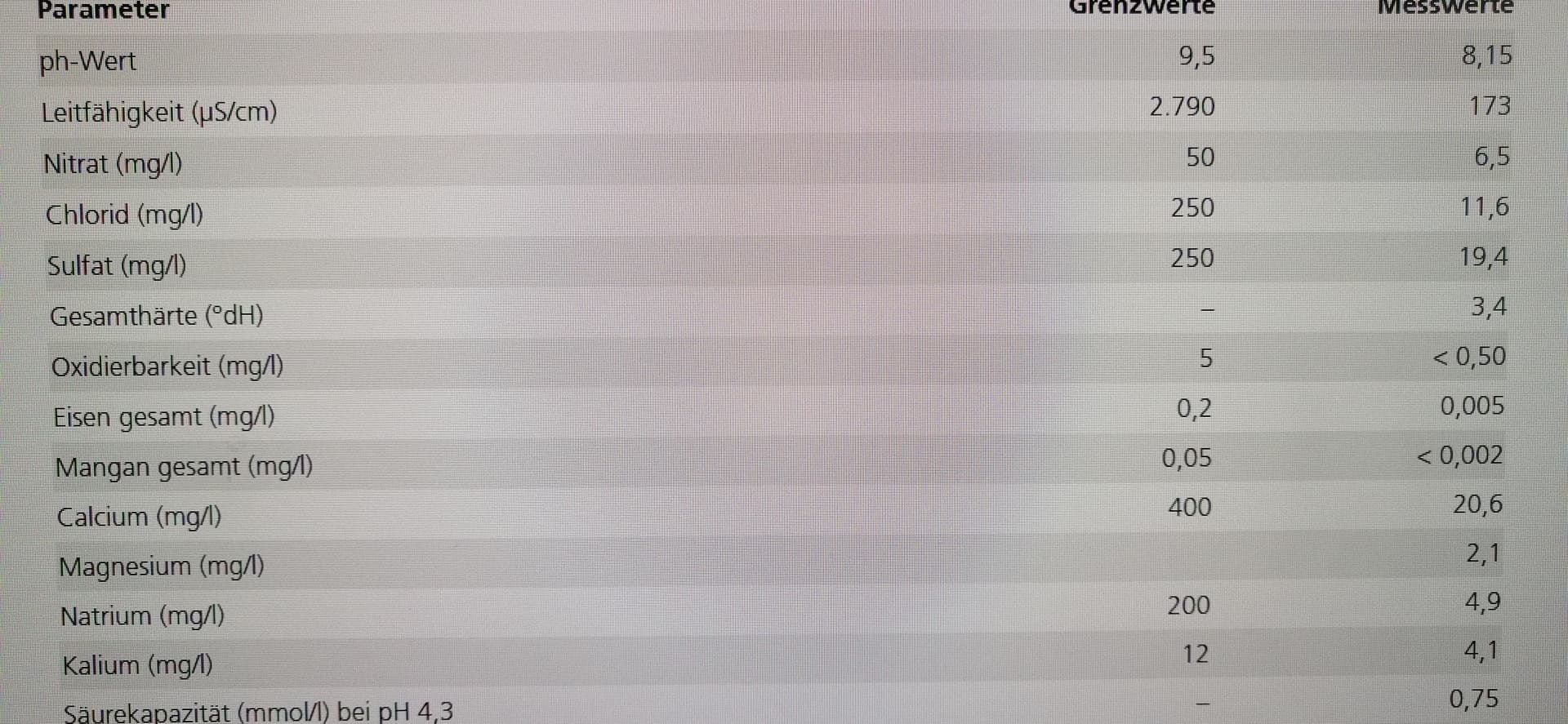 Wasserwerte lt Versorger - imo ein Witz, kriege 2,0 weniger an PH aus der Leitung.