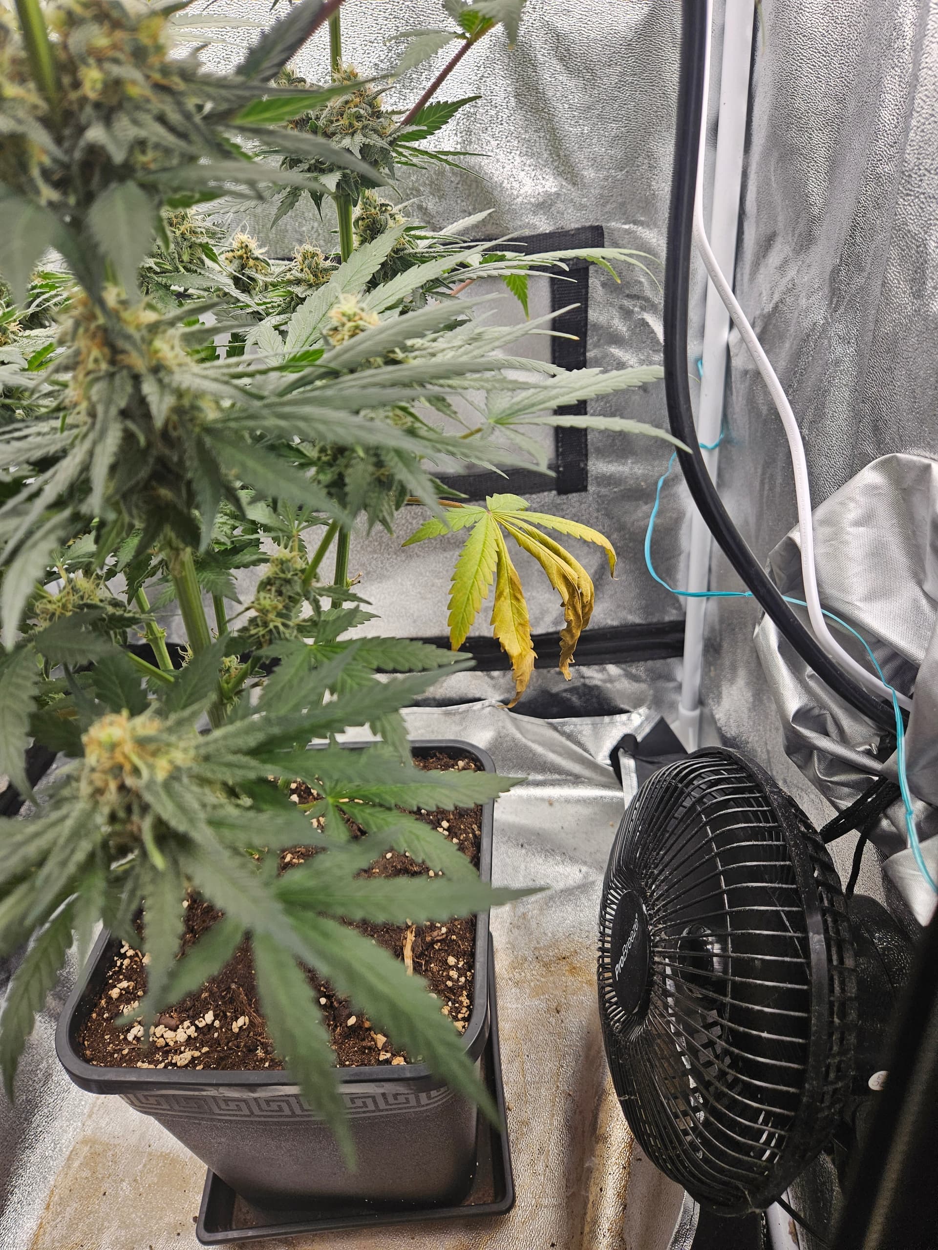 Ja auf dem Boden habe ich ein Honeywell stehen, habe den aber gerade ausgerichtet, also nur zwischen denn Töpfen durch. Kann ich den eventuell etwas schräger stellen oder muss ich dann Angst vor Windbrand, wenn er direckt auf die Pflanzen pustet?