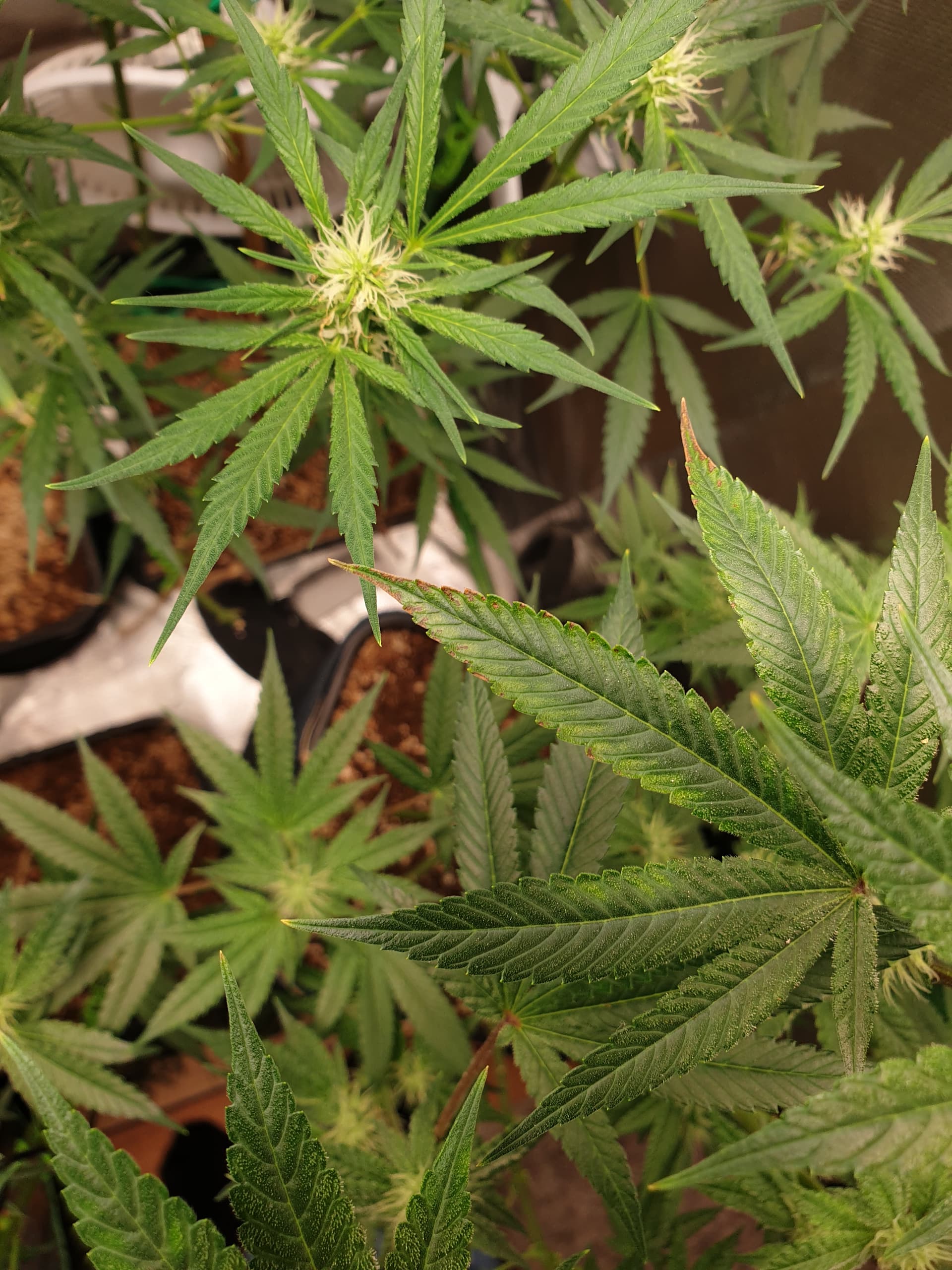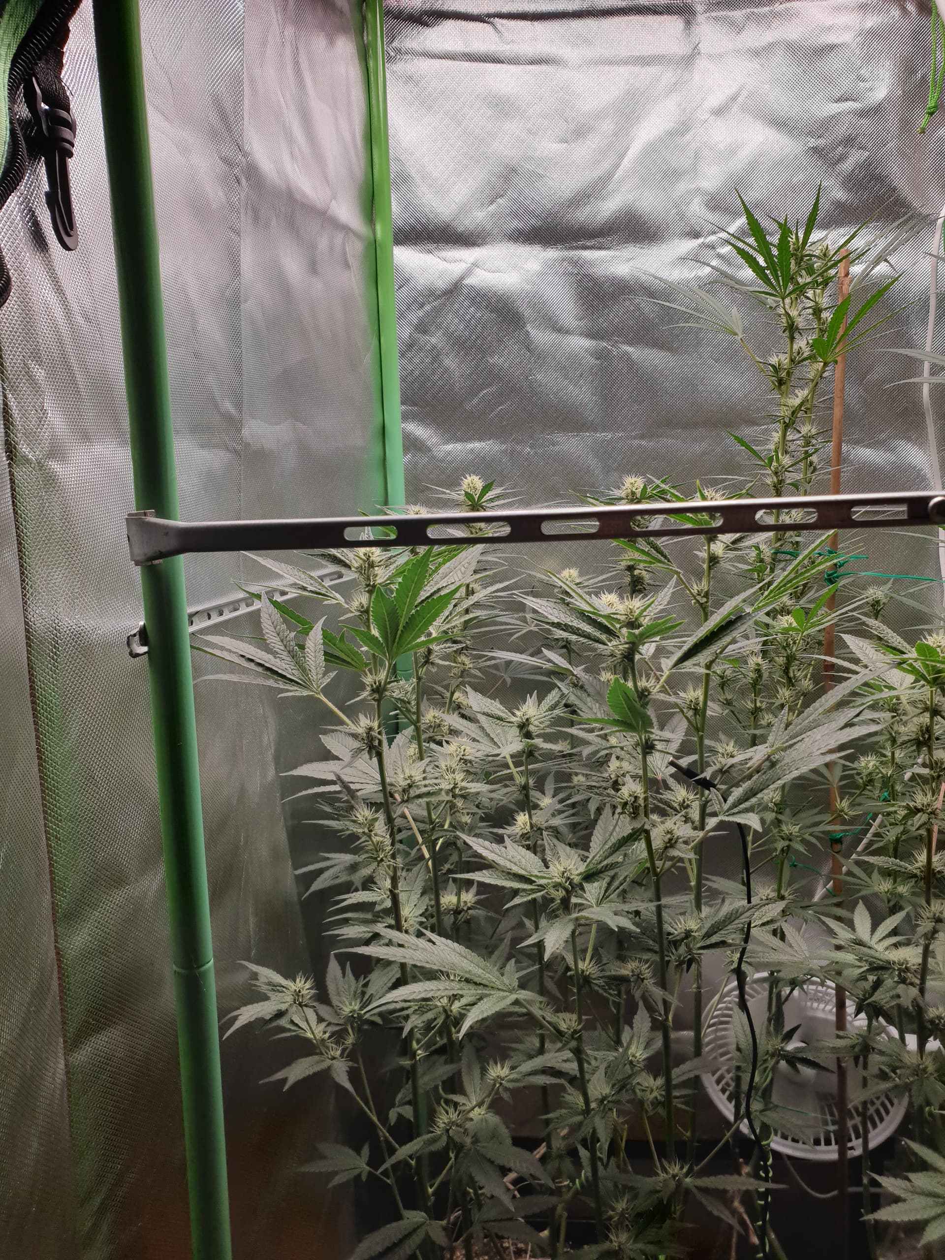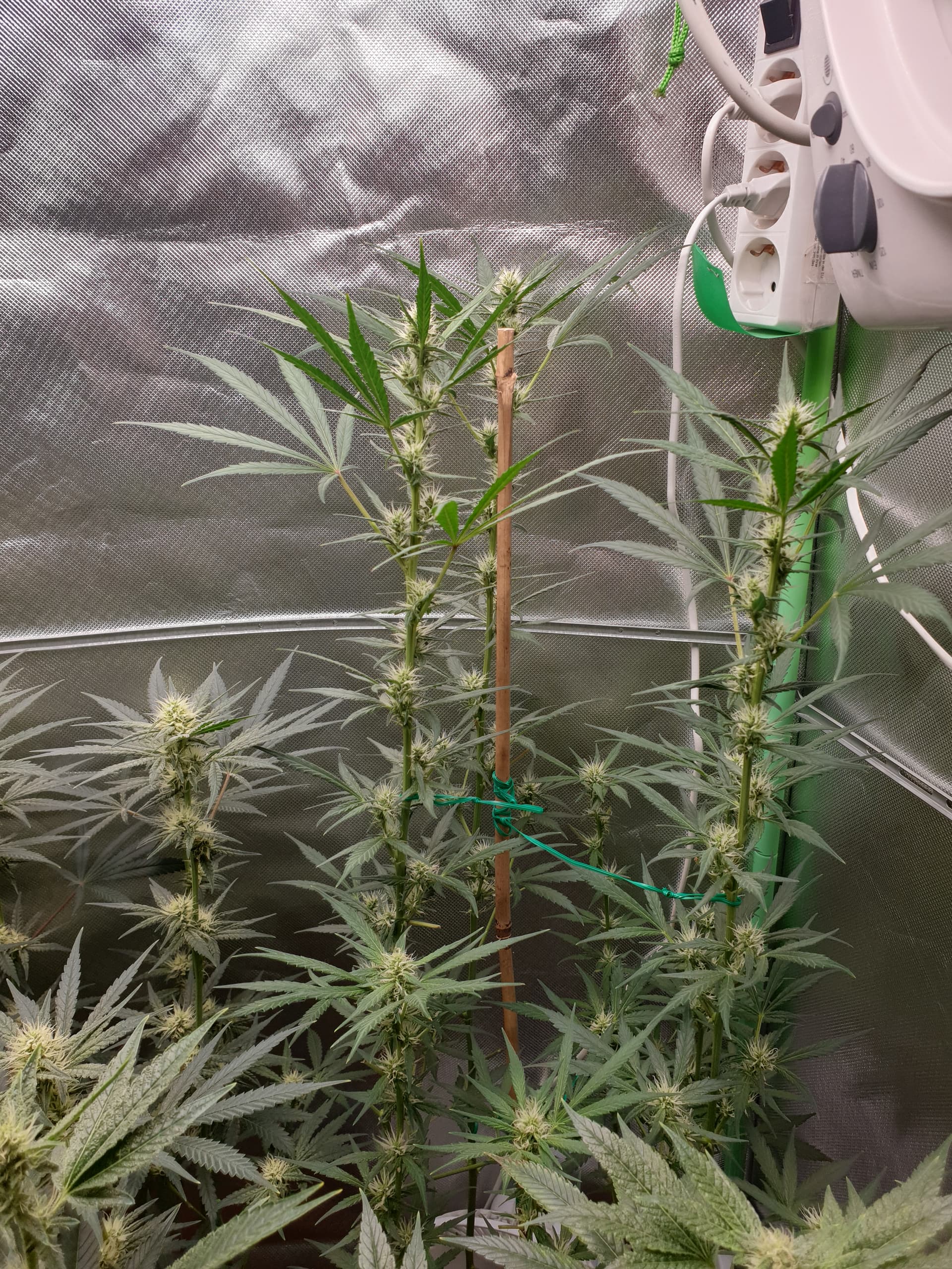 Hi leute hab ausversehn bei Umhängen an den dimmer meiner Ts1000 gepackt und amihn ausversehn recht genau zwischen 100und 75% gedreht bei ohnehin schon geringerem Abstand . Nur aufgefallen weil die Spitzen der blühenden triebe anfingen auszuleichen und ein Blatt vin der spitze ab brwunen Rand bekommen hatt und ich auf Fehler suche ging. Dachte es wären stärkere dünge spitzen bis mir der dimmer aufgefallen ist… Han jetzt die rachets raus und die led direkt unter die Stangen gehängt (die AmnesiaZ ist so groß das mir der Platz nach oben ausging daher das Problem mit dem Abstand) nur bin ich der Meinung das die Blätter sich immer noch zu sehr aufrichten und immer gegen ende der tag phase 1/2 Blätter sich leicht drehen. Was sagt ihr dazu wenn ihr die Bilder seht, schaut es für euch so aus als wäre immer noch leichter lichtstress vorhanden. ![]()