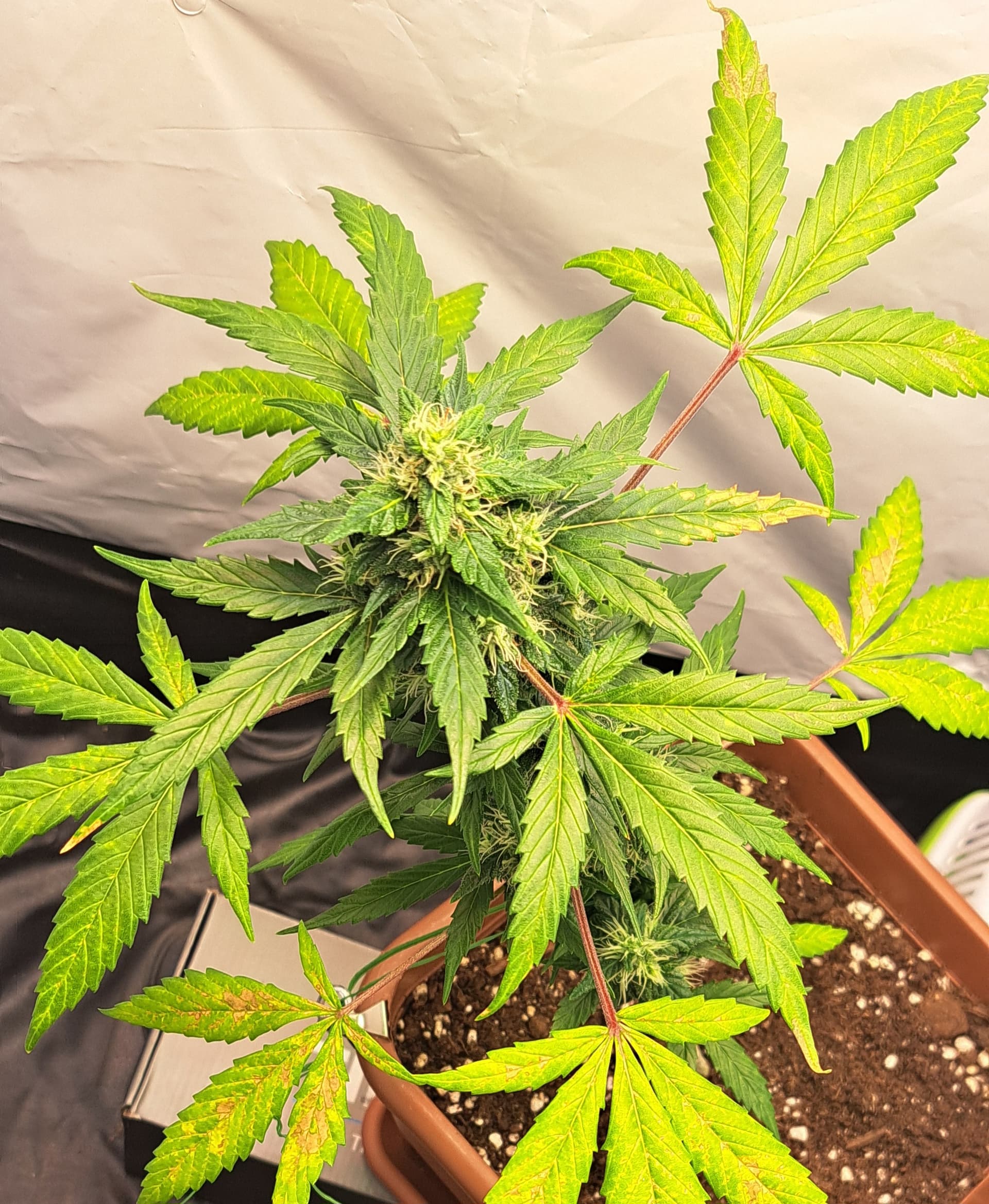 Ist auf jeden Fall eine risikoreiche Mischung aus Substrat, Dünger und Bewässerung. Wenn die Pflanzen in Richtung Hellgrün gehen, dann fehlt in der Regel (N), also Stickstoff. Kann sein, dass die vorgedüngte Erde ihren Beitrag bis jetzt geleistet hat und nun leer ist, kann sein, dass die Bio-Tabs aufgebraucht sind oder niemals mit Erde und Coco funktioniert haben.