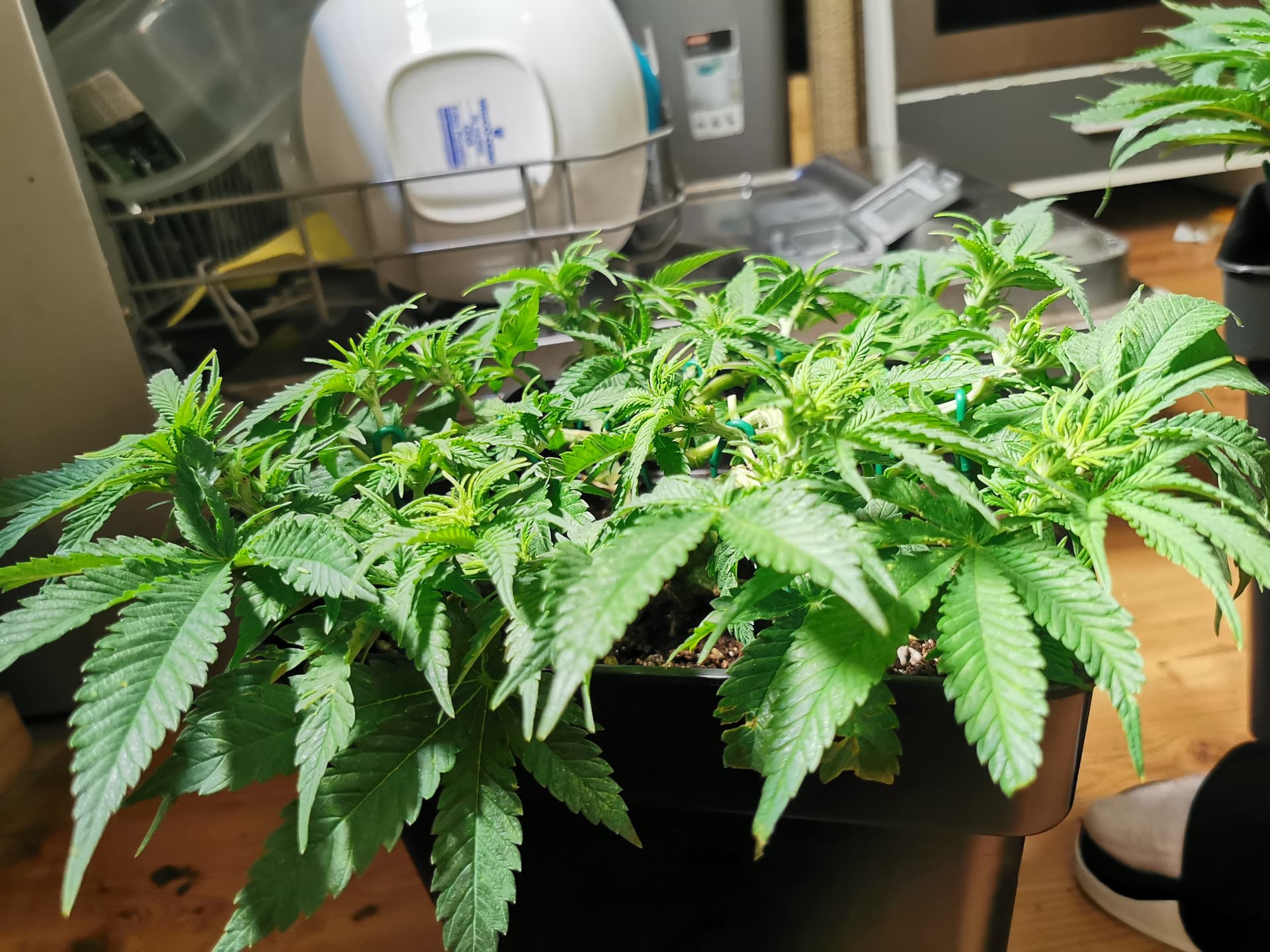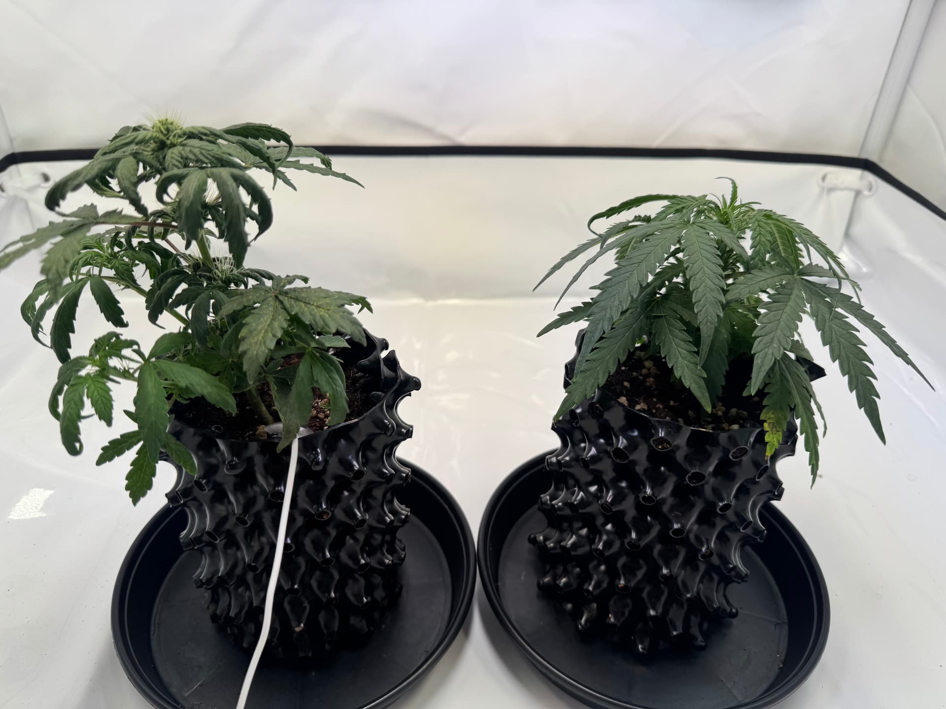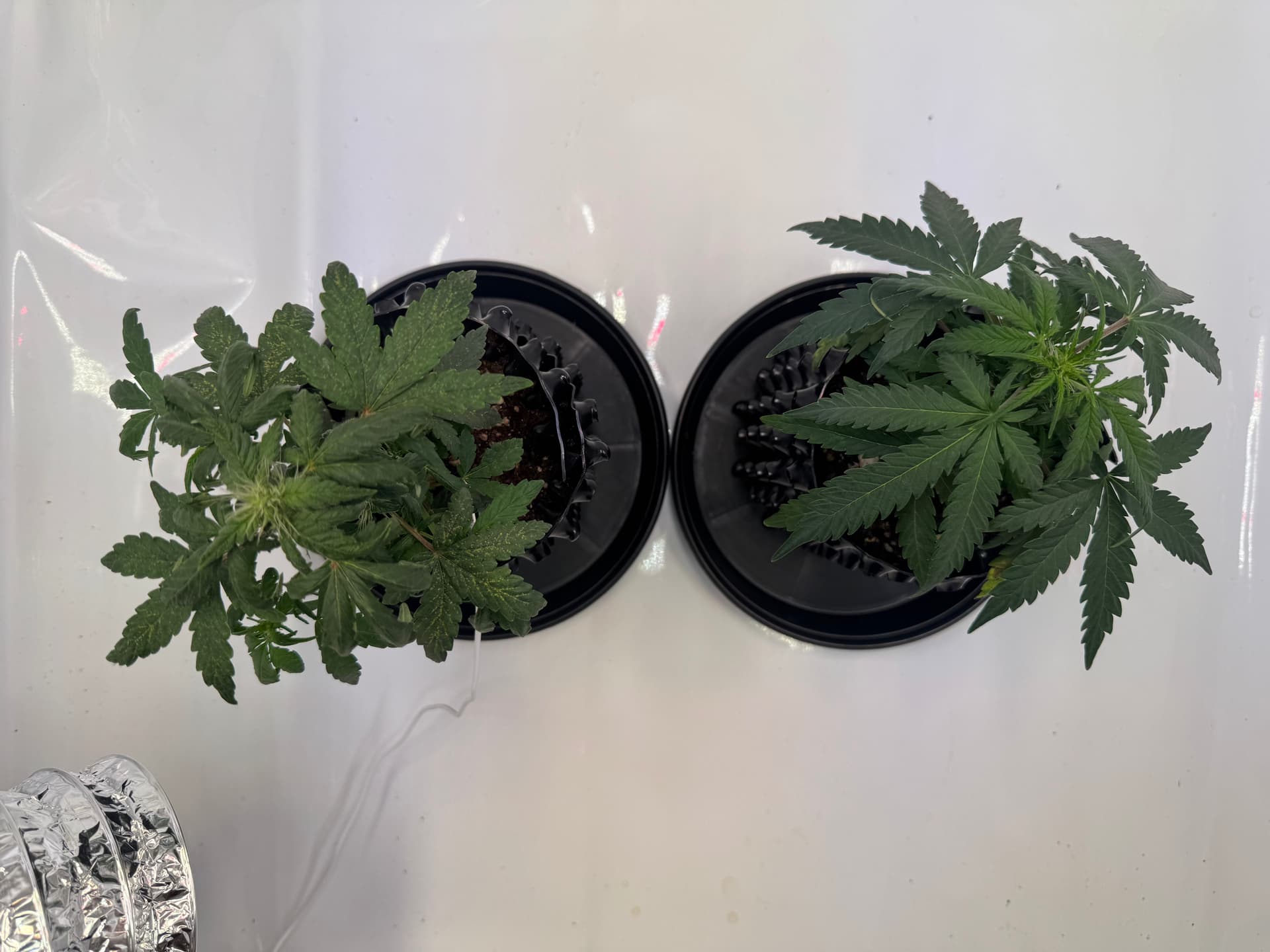 Grdsl. habe ich den Eindruck, dass es sich um zwei verschiedene Sorten handelt. Die höhere Pflanze lässt aufgrund der Blattform eher eine Indica vermuten, obwohl Lemon Haze ja eigentlich einen höheren Sativa Anteil hat.