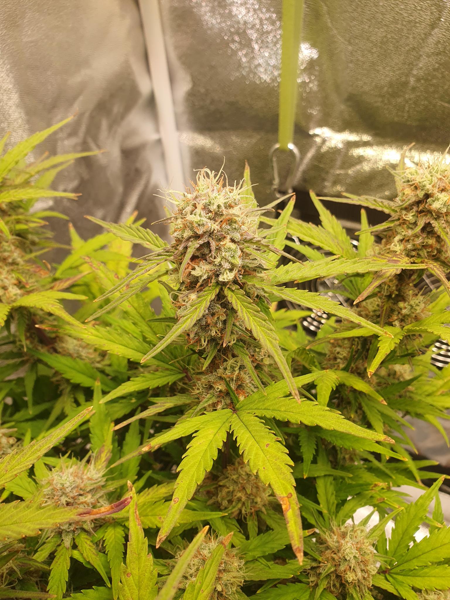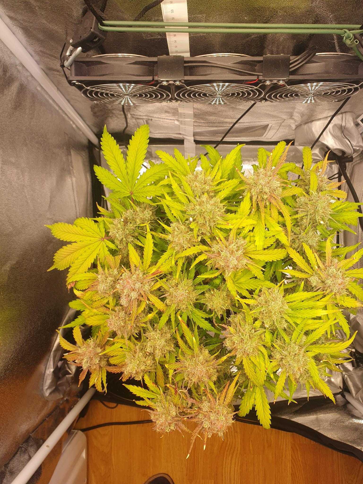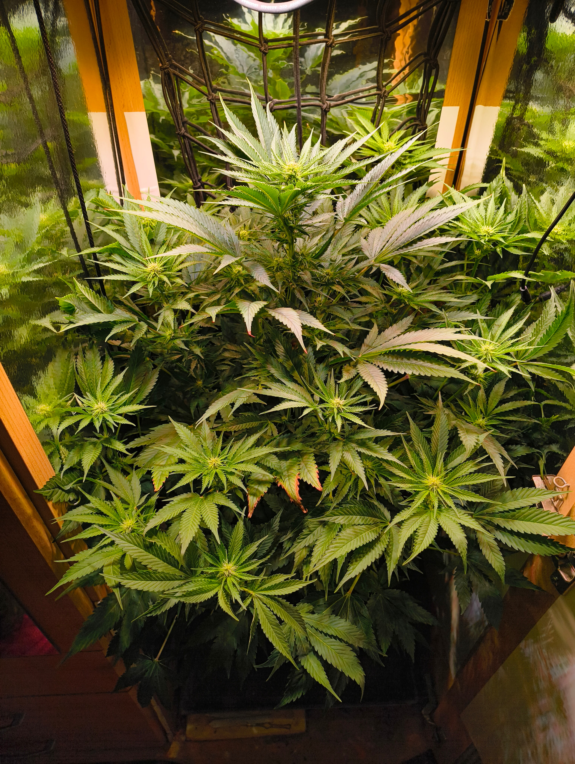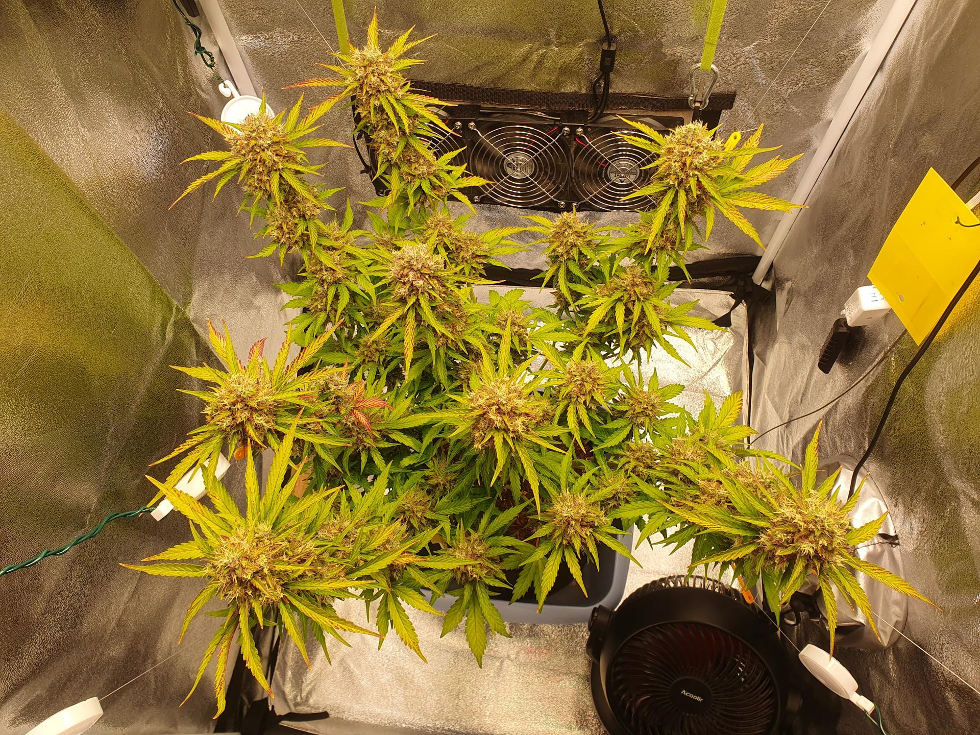 Naja, wie auch immer, ich finde, dass die paar gelben Blätter in der 10. Woche überhaupt nicht schlimm sind. So lange es den Blüten gut geht ist alles top, oder? Du wirst demnächst ernten?