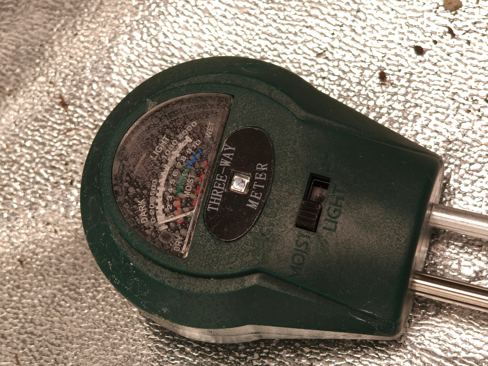 Der Messer misst nur an der spitze ganz unten. Je nach Topf brauchst du oben unten und Mitte wegen Trockenspots. Habe meinen tief geparkt und nur unten gemessen… 10cm hoch gezogen und bums trocken. Immer wieder hat der entweder voll ausgeschlagen oder sich garnicht bewegt. Ist bei mir dann raus geflogen.