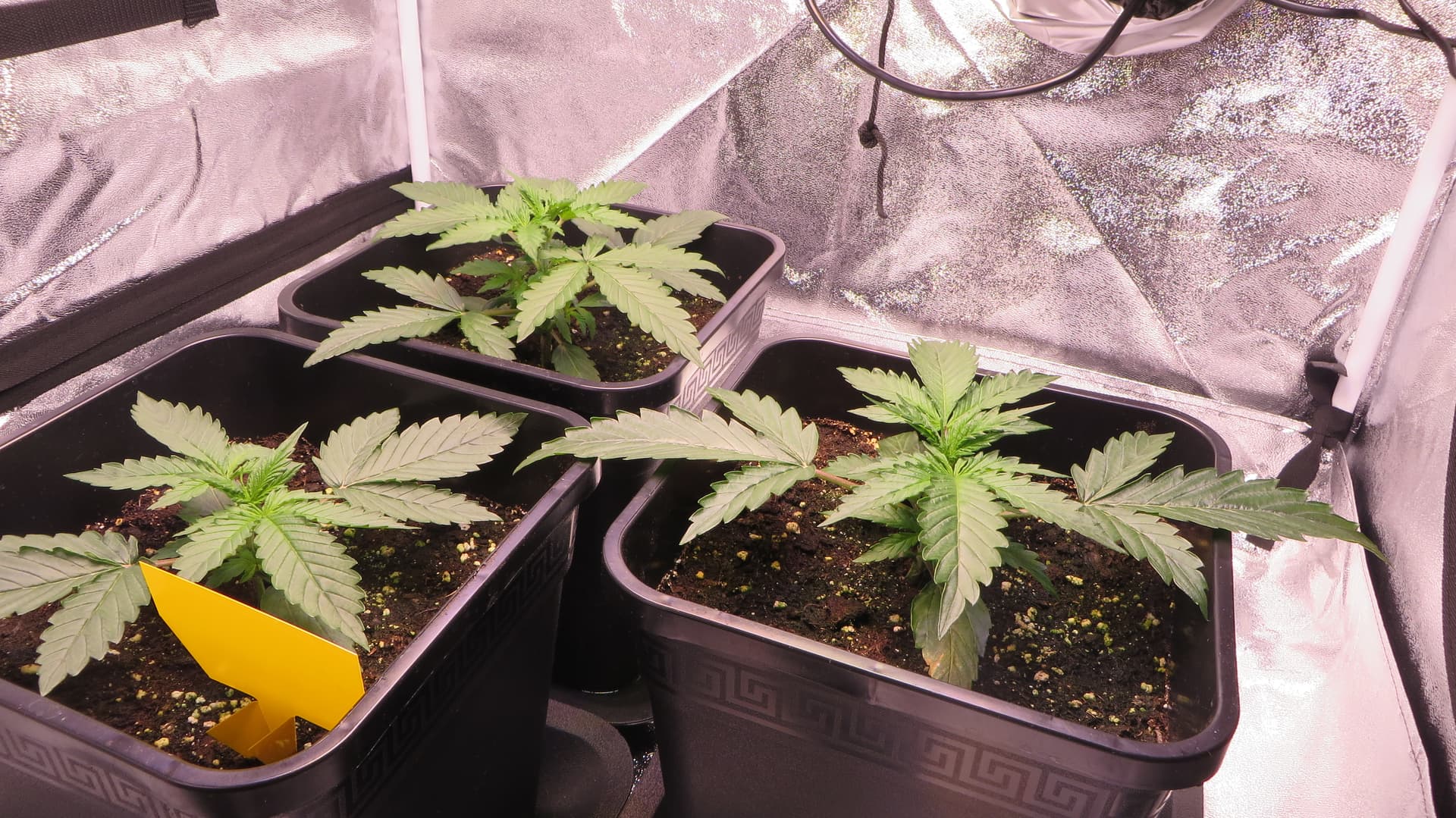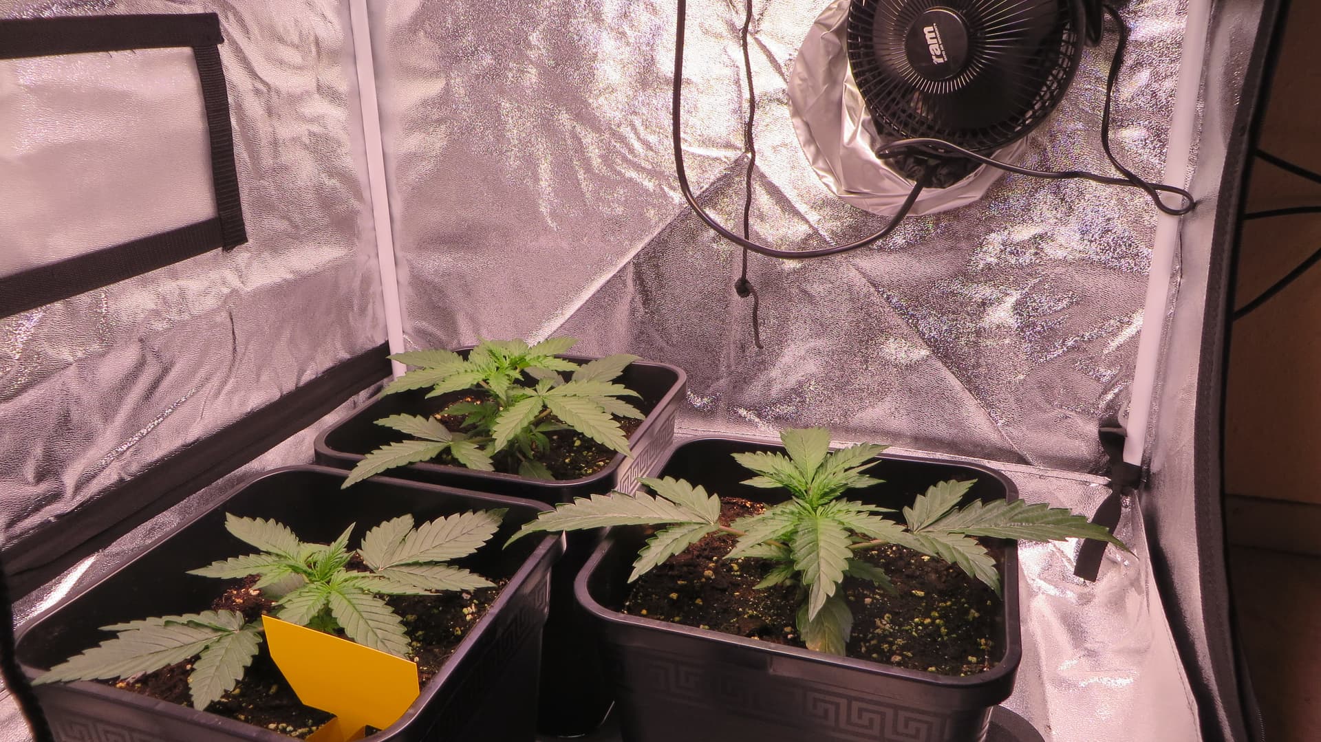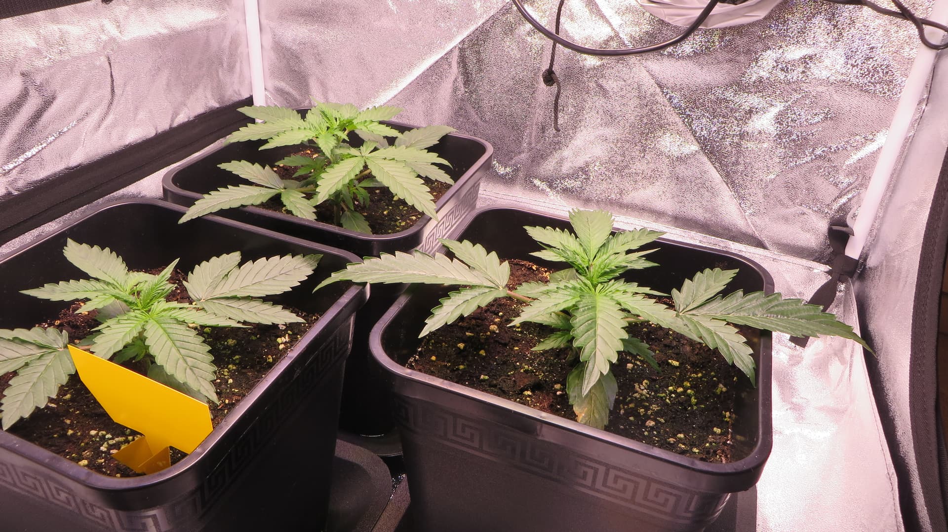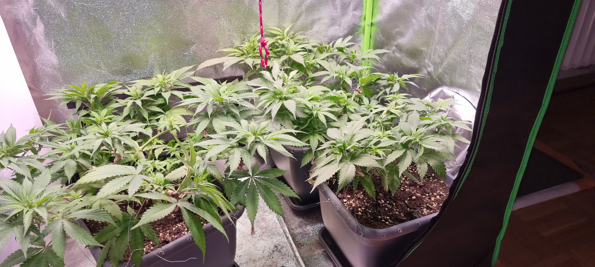 Die haben jetzt zum zweiten Mal Bloom bekommen. Eigentlich wollte ich auch bereits umstellen, aber die rechte hintere Pflanze mickert vor sich hin…