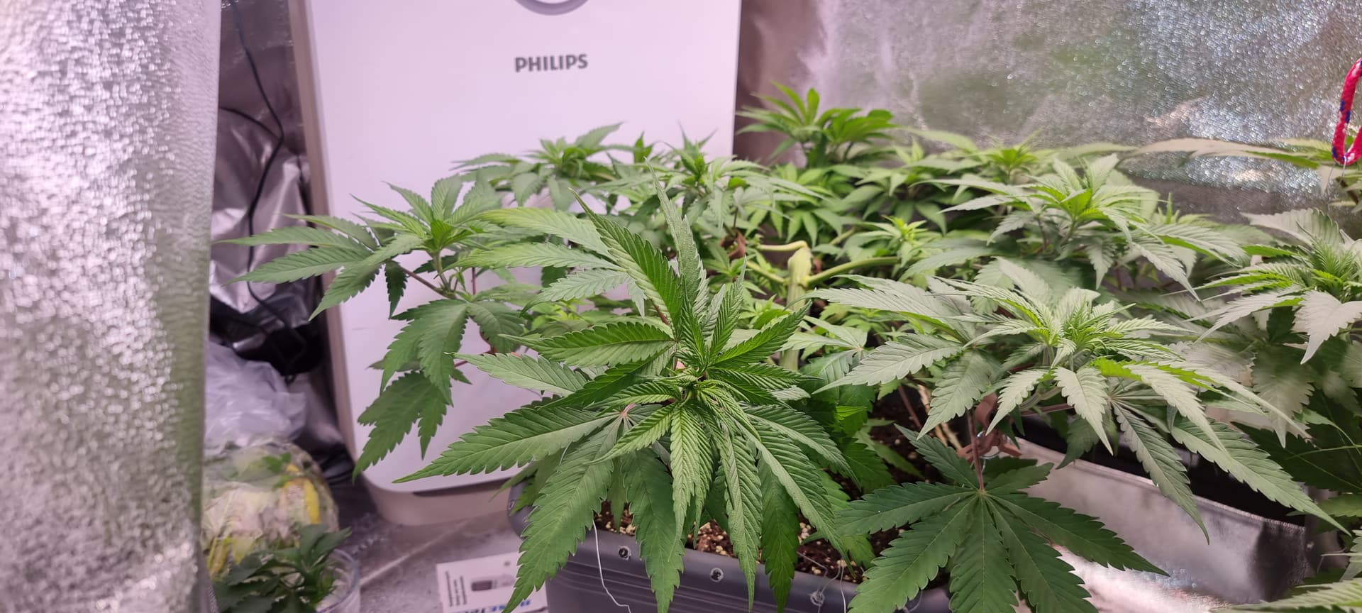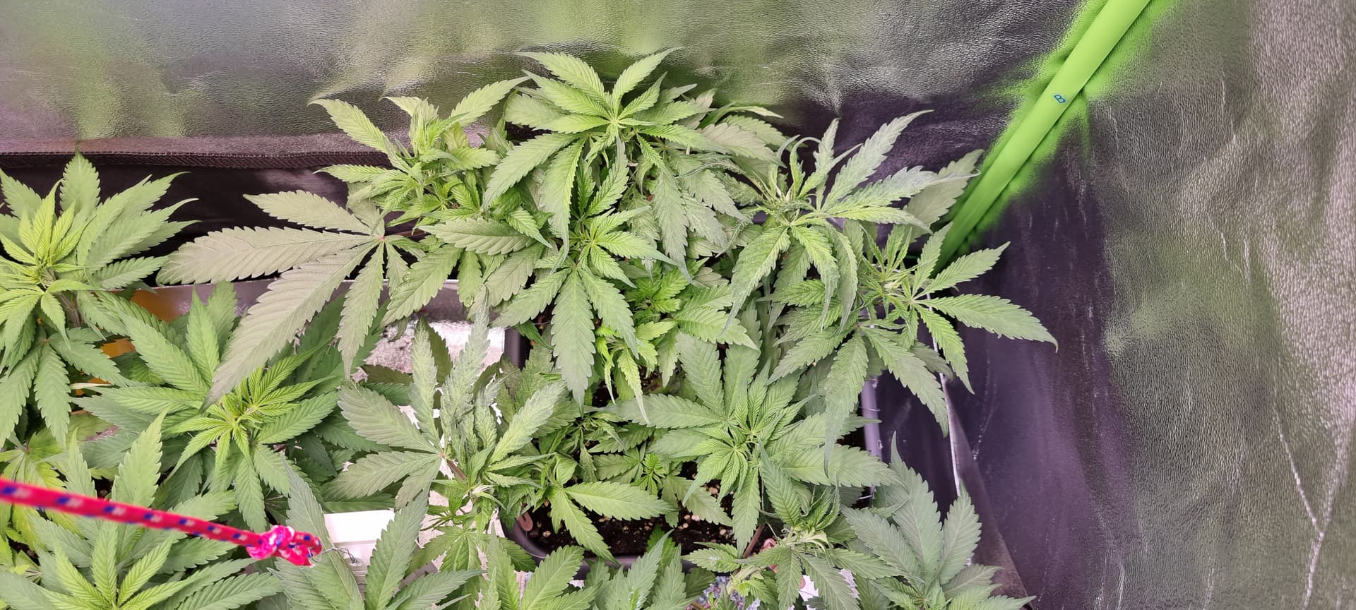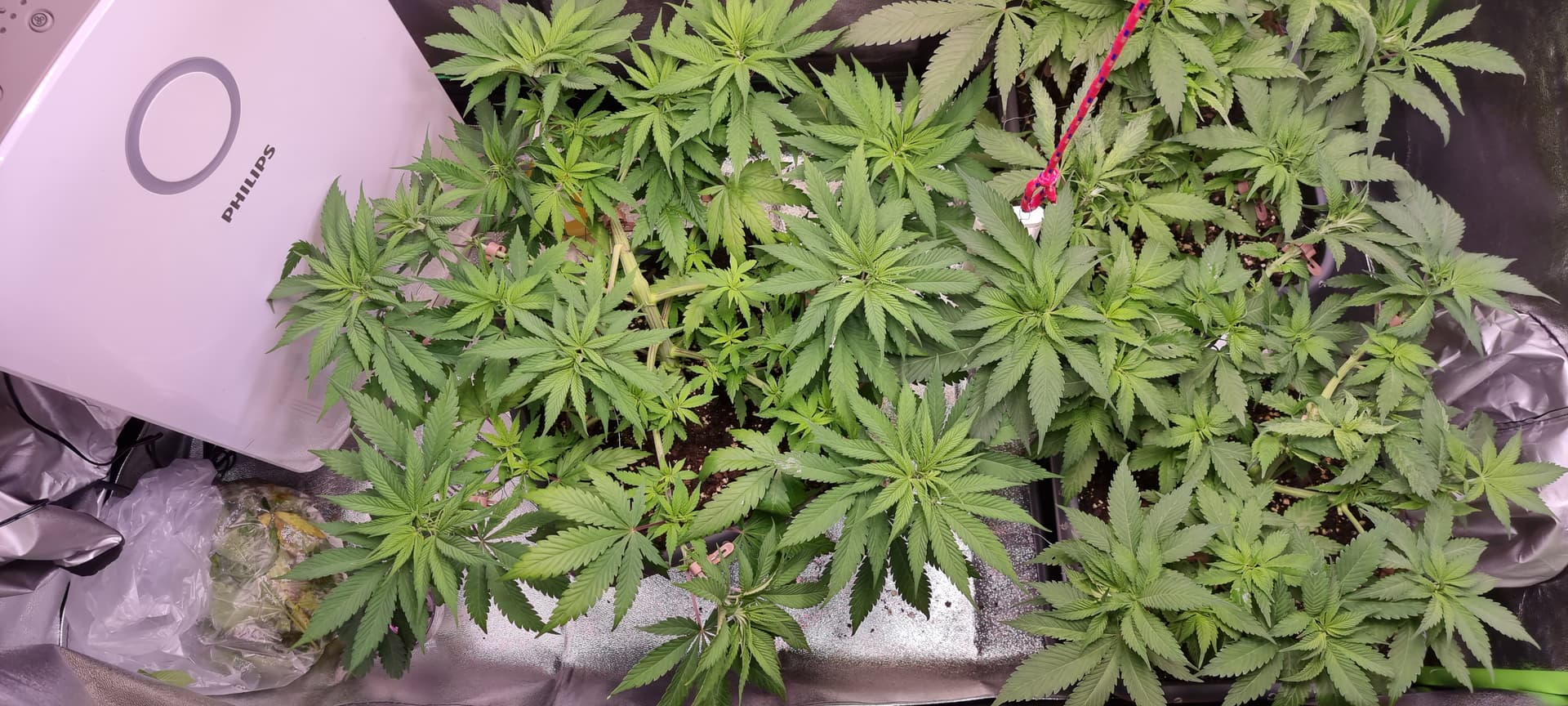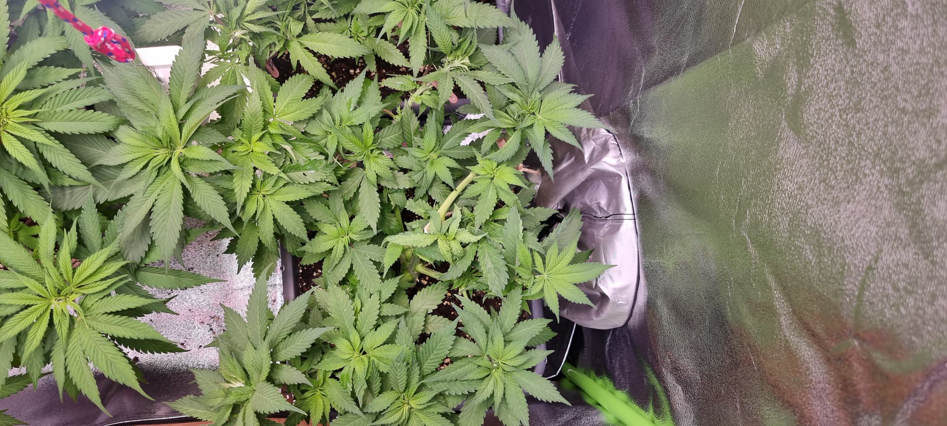 Die Stecklinge würde ich von der größten Pflanze nehmen. Die Pflanze hat im unteren Bereich nun viele neue kleine Triebe entwickelt. Davon würde ich gern 2- 3 herausnehmen, mehr als 2 - 3 Pflanzen würde ich ohnehin nicht benötigen. Allerdings sind die noch recht klein und ich bin mir nicht sicher ob ich damit die Ernte reduziere oder ob die ohnehin entfernt werden müssen und ob die bei der jetzigen Entnahme nicht doch noch zu klein sind. Die Pflanzen müssen aber jetzt zeitnah in die Blüte, sonst schafft meine EVO die Fläche nicht mehr.