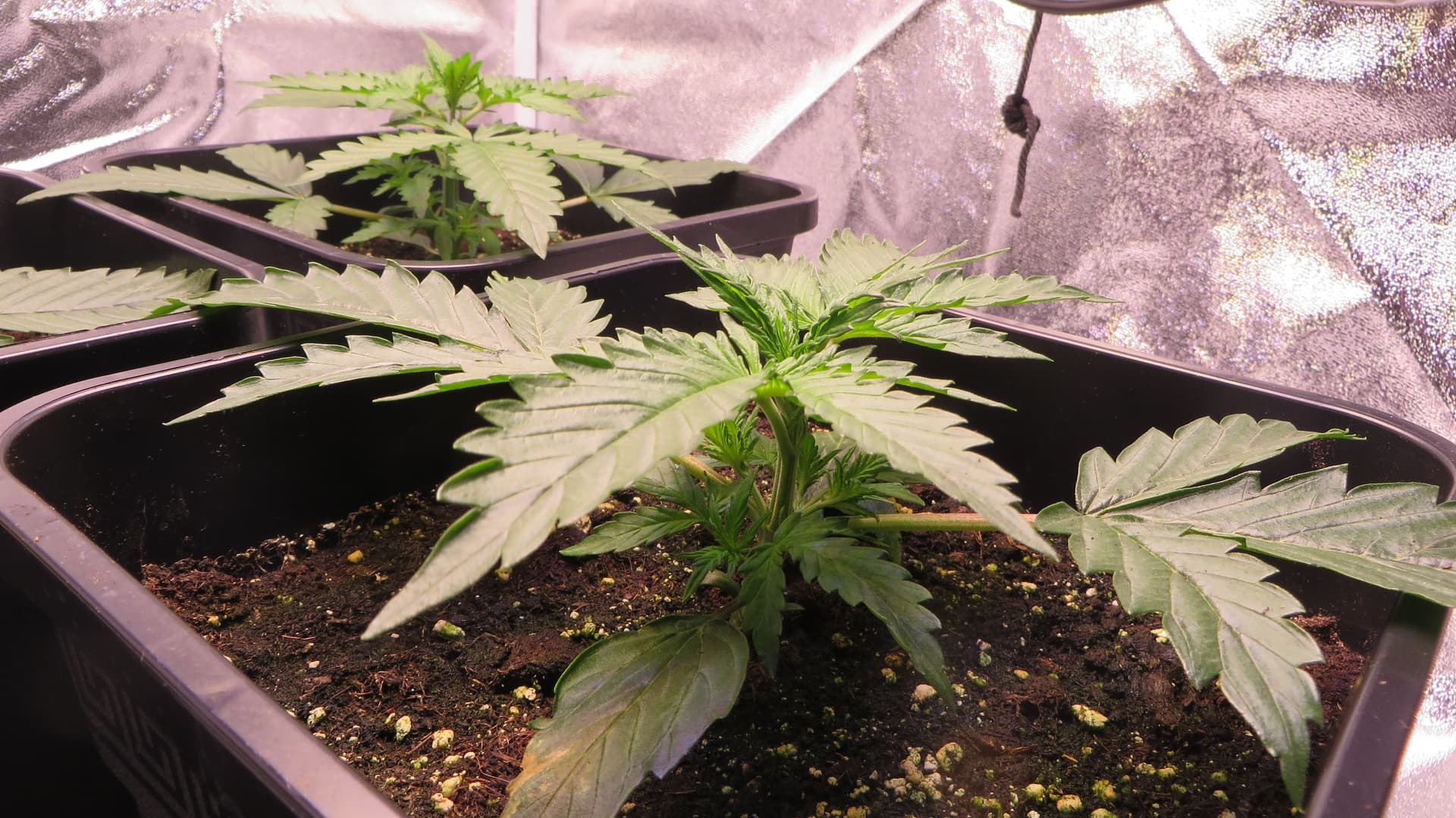 Ich schrieb ja schon das dies mein erster Start ist und da einiges schief lief. Daher auch besonders hinten rechts die Pflanze die recht mickrig ist. Links hatte sich durchweg gut durch meine Fehler geschlagen.