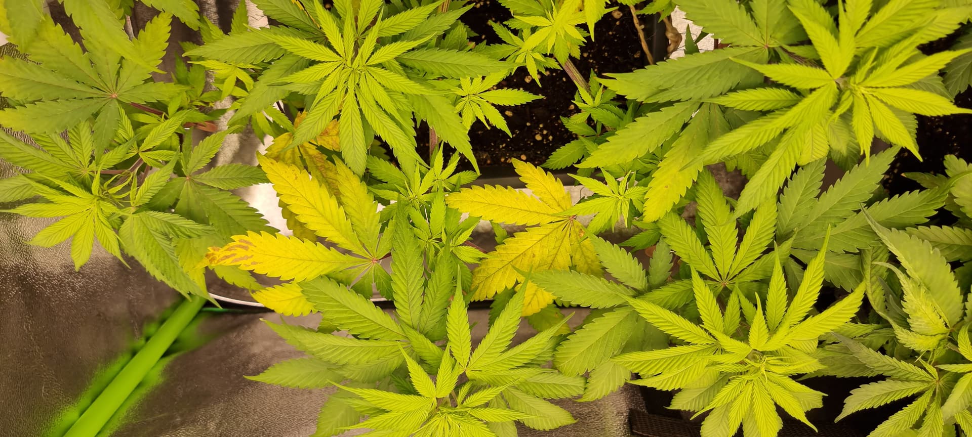 Hallo, seit 2 - 3 Tagen fängt eine Pflanze an im unteren Bereich gelbe Blätter zu bekommen. Lichtstress schließe ich aus, da müssten dann soweit ich mich eingelesen habe die oberen Blätter eher gelb werden.