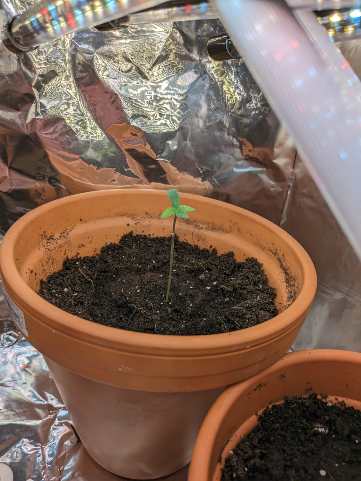 - Gießen: Ein mal als der gekeimte Samen in den Topf gekommen ist. Dann nochmal nach ca. 4 Tagen. Und letztlich gestern, als mit die hängenden Blätter aufgefallen sind. Jeweils 1/3 Topfvolumen Gießmenge mit Leitungswasser. Habe mit Feuchtigkeitsmesser geschaut, dass auch die Erde unter der Oberfläche feucht ist.
