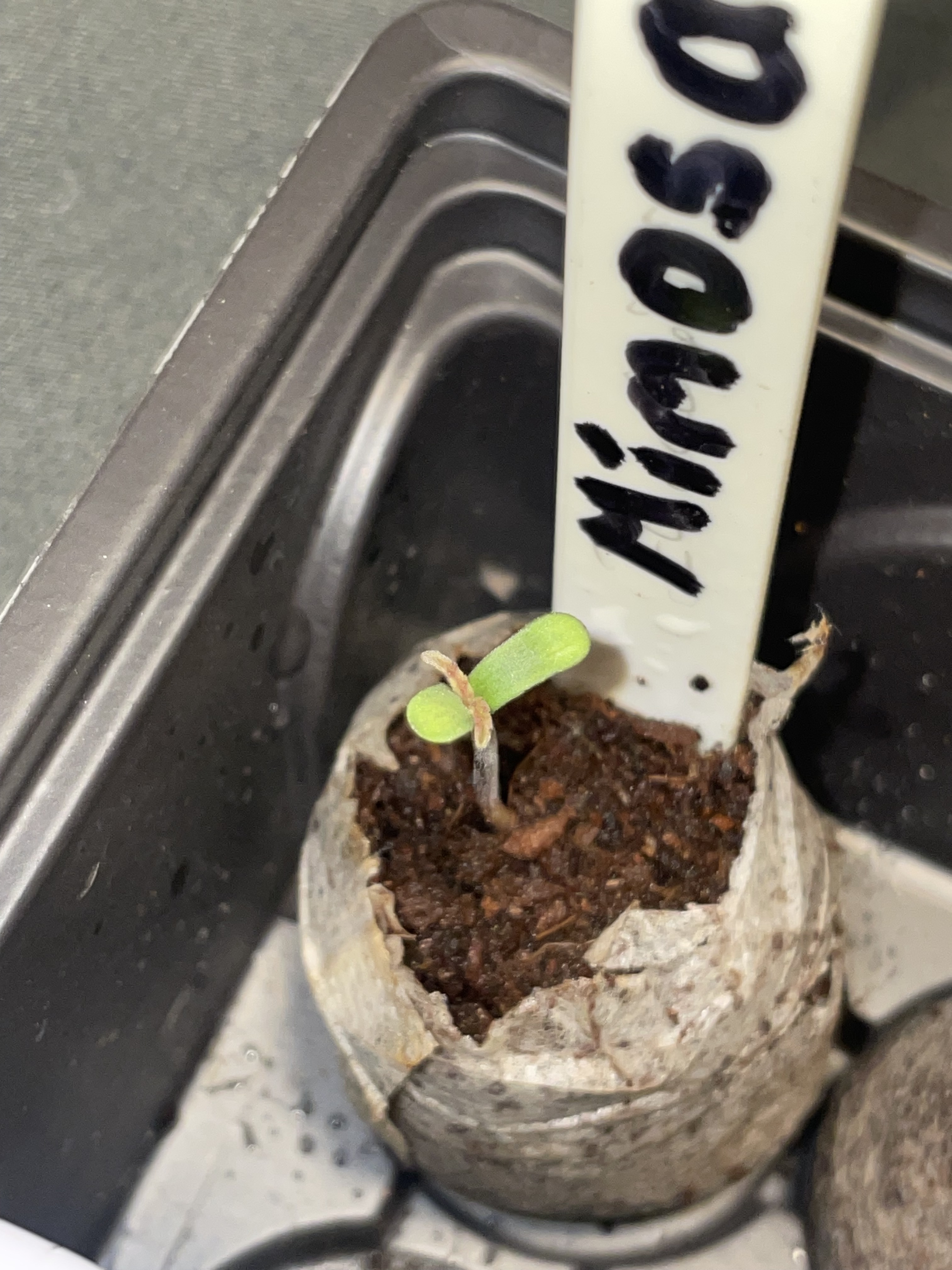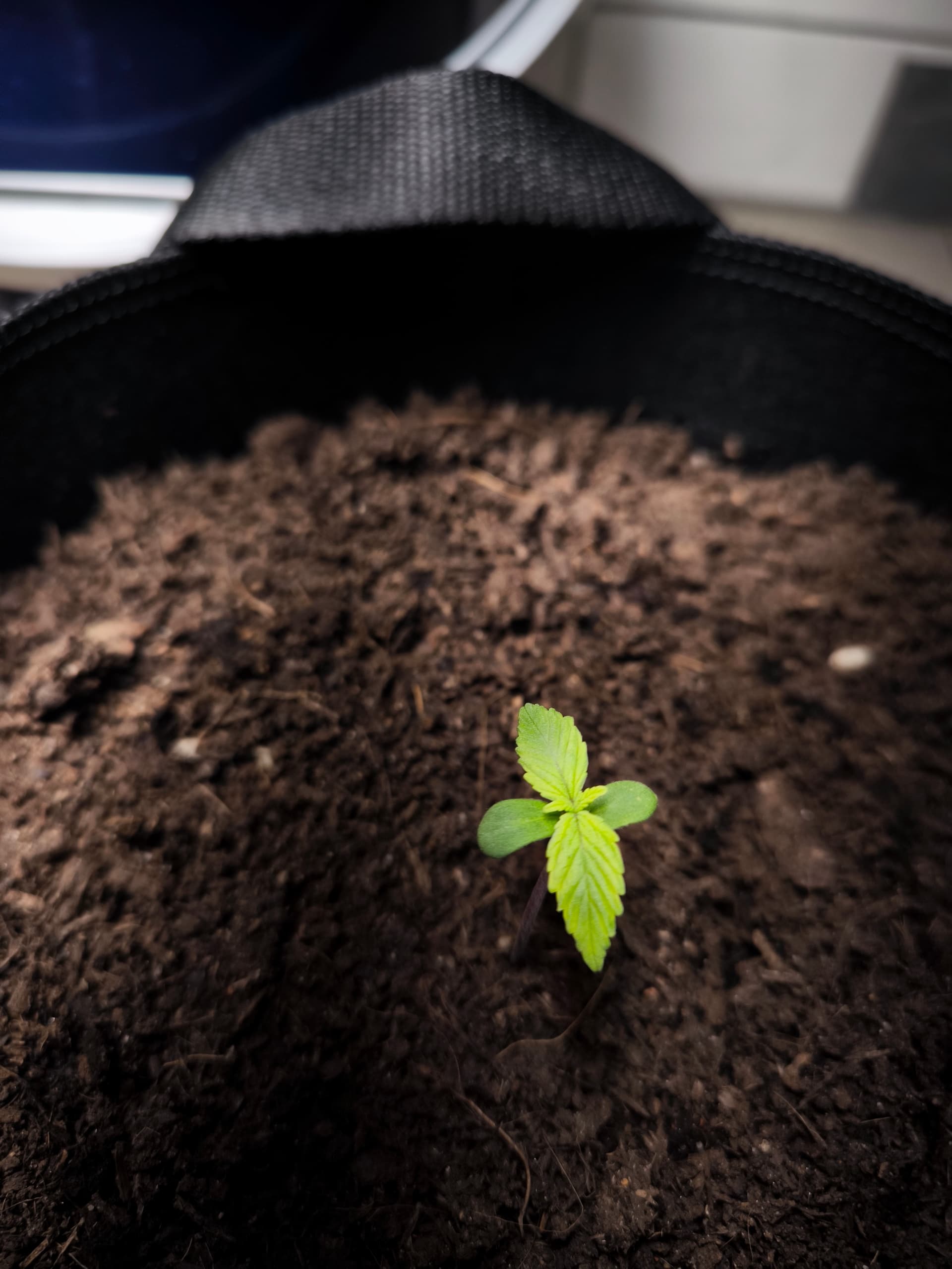 Ist ca. 2 wochen alt und wurde in einem Torfquelltopf gekeimt. Nachdem ich unten die ersten Wurzelspitzen gesehen hab, habe ich die Pflanze in diesen etwas größeren Topf umgetopft.