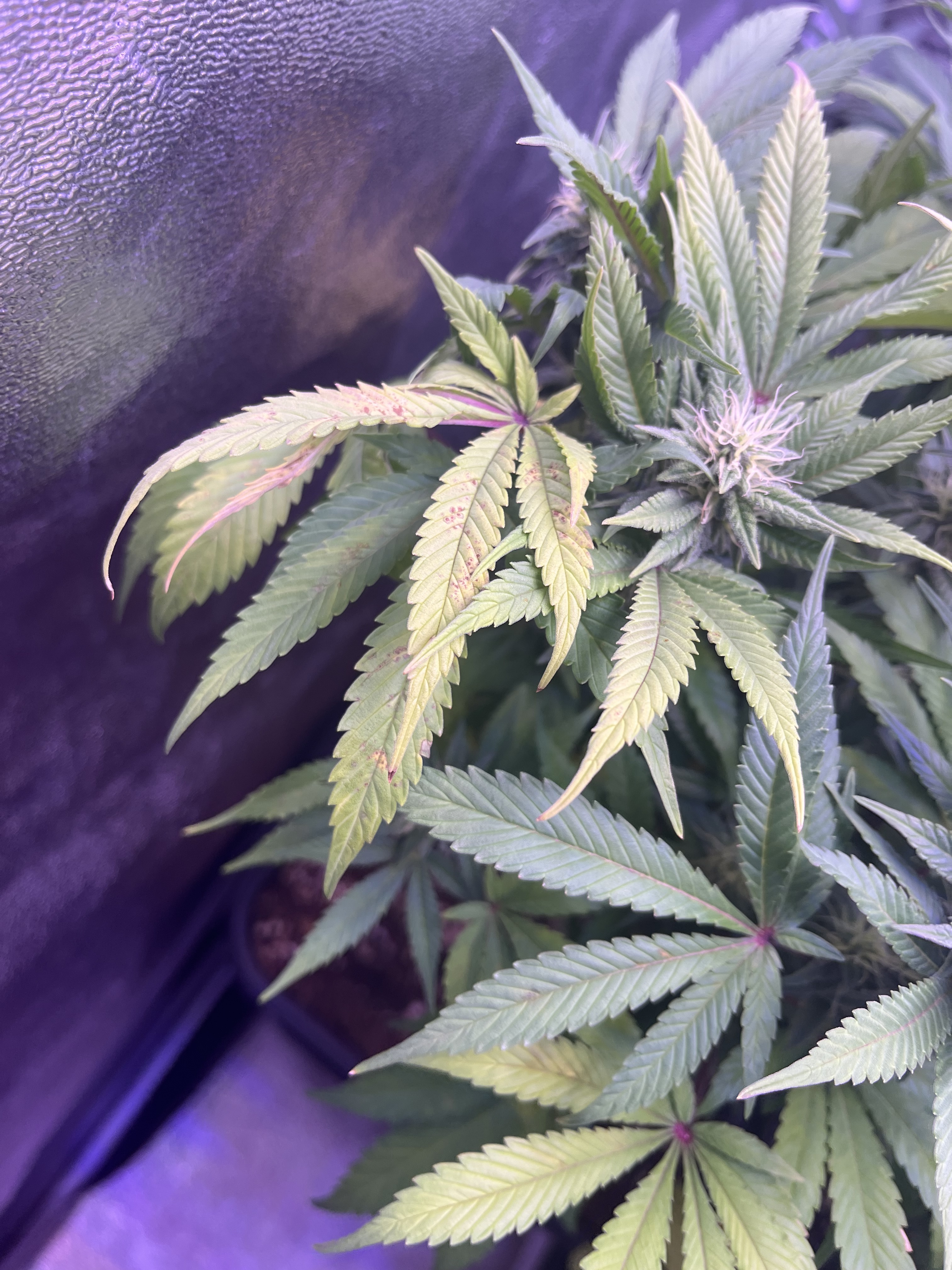 Moin Leute ich würde gerne mal wissen wonach es für euch aussieht, es haben nur 2/3 frozen black cherry, es steht noch mit im Zelt sleepy joe runtz und og Kush dort ist nichts von solchen Punkten zu entdecken
