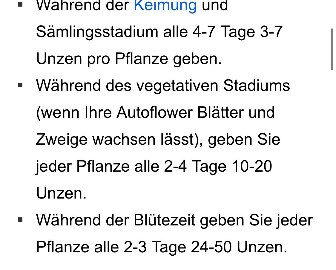 Nach und nach die Gießmenge auf 1/3 erhöhen (erst 1m5 Liter / dann 2 Liter) und wenn die oberen 2-3 cm trocken sind wieder nachgießen. Das war dann so alle 2-3 Tage. Ich habe aber ab 1,5 Liter das Problem das mir das Wasser dann immer aus dem Stofftopf läuft. Deswegen habe ich das noch mal versucht weiter im Internet zu recherchieren und bin auf folgenden Thread gestoßen: