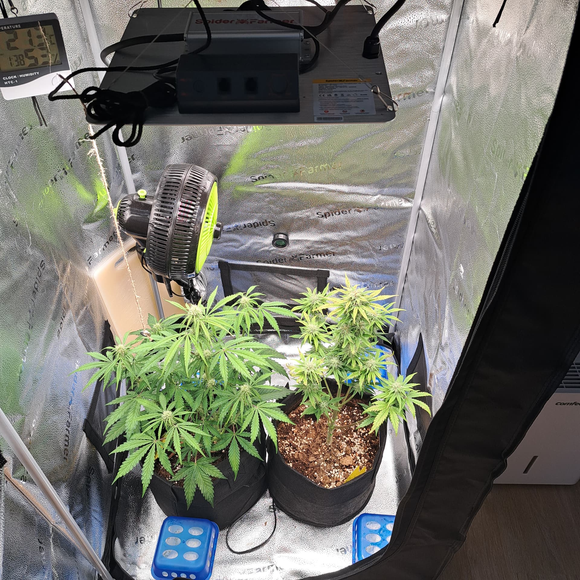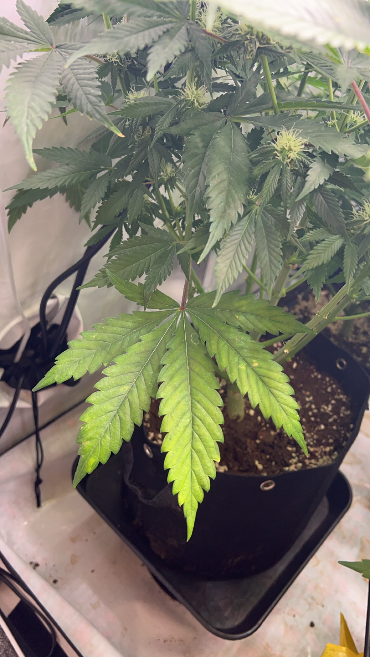 Moin ich meld mich hier nochmal und zwar hatte ich die Tage schon was dazu geschrieben dort wurde mir gesagt es könnte Lichtstress sein und ich sollte drauf achten nicht zu überdüngen.. ich habe nun jedoch meine Lampe etwas runtergestellt und Abstand ist bei 30-40cm zu den Spitzen der Pflanzen.. jedoch werden die Blätter weiterhin so hell/gelb kann mir jemand helfen und hat dort Ahnung? Gießen tue ich nach Bio Bizz Schema und 1/3 Regel immer dann wenn die ersten 2cm der Erde trocken sind im Topf.. also an eine Überdüngung glaub ich erstmal nicht eigentlich und Lichtstress hm also bei 30-40cm Abstand und 240W Leistung welche gedimmt ist auf 900ppfd würd ich eigentlich auch sagen dass das passt.. BW5 und 900ppfd sollte doch gehen oder?