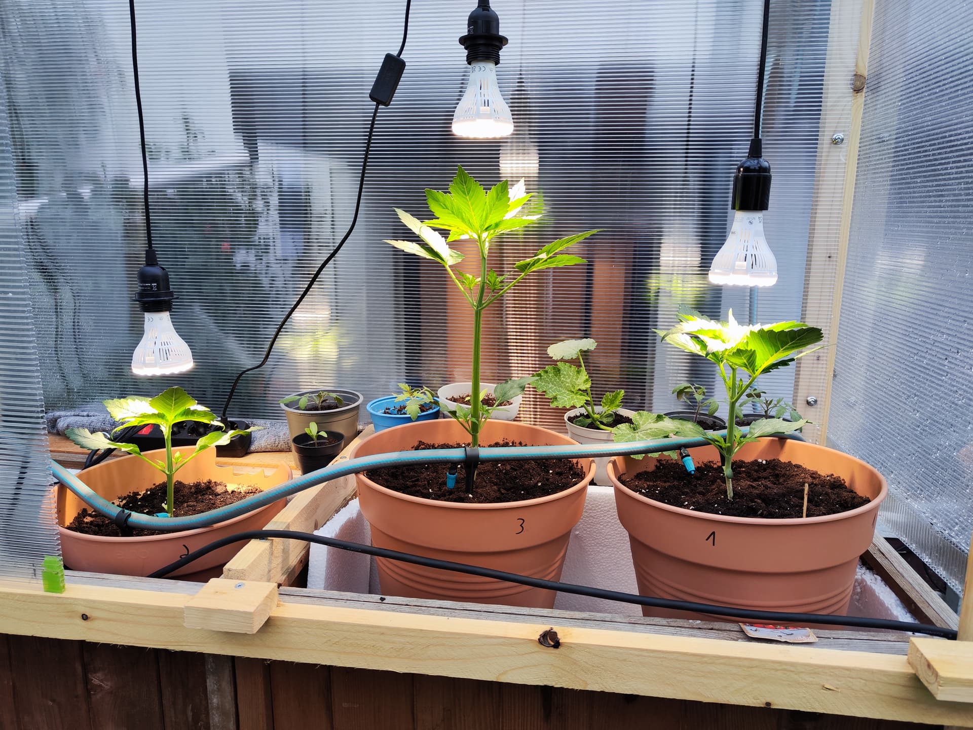 Nun aber zur Frage. Die sollen alle bis zu 100cm hoch werden, nur die in der Mitte schiesst so arg nach oben. Da mal die Lampe wegnehmen oder die der Linken in die Mitte hängen?