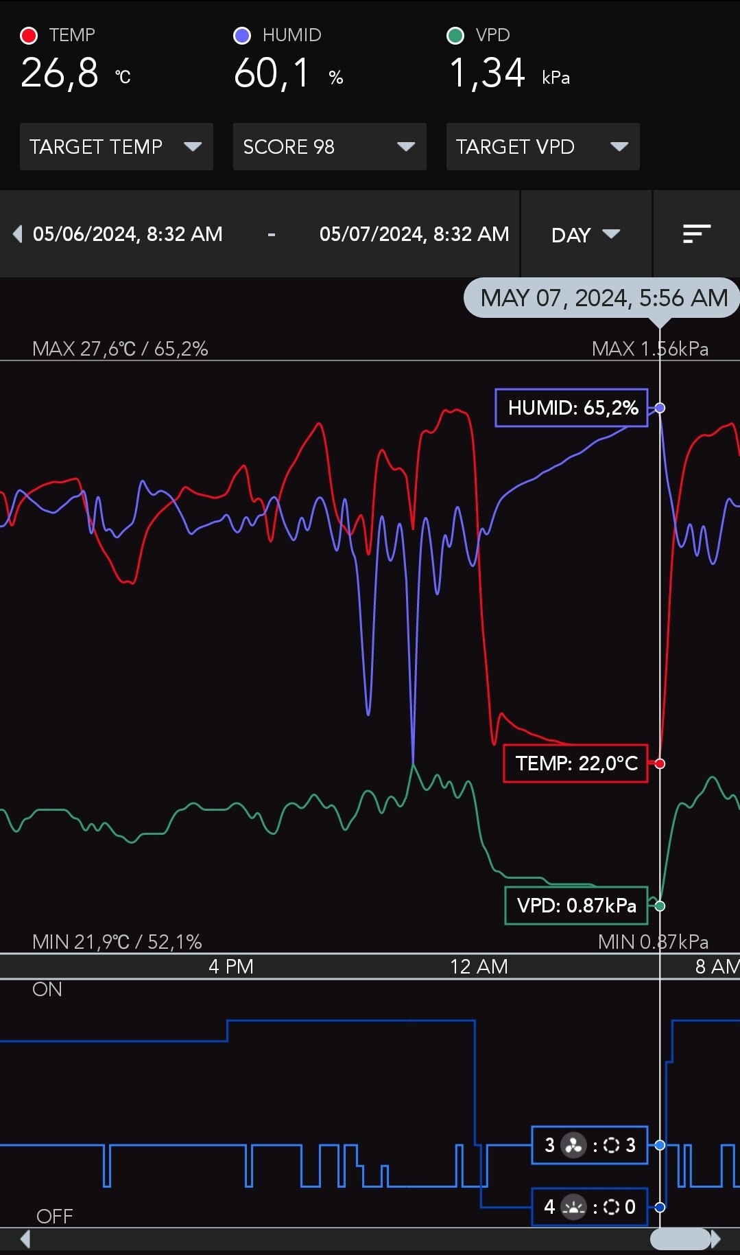 Wenn die dann tiefer in der Blüte stehen, solltest definitiv unter 50% sein und auch bleiben , egal ob Tag oder Nacht!