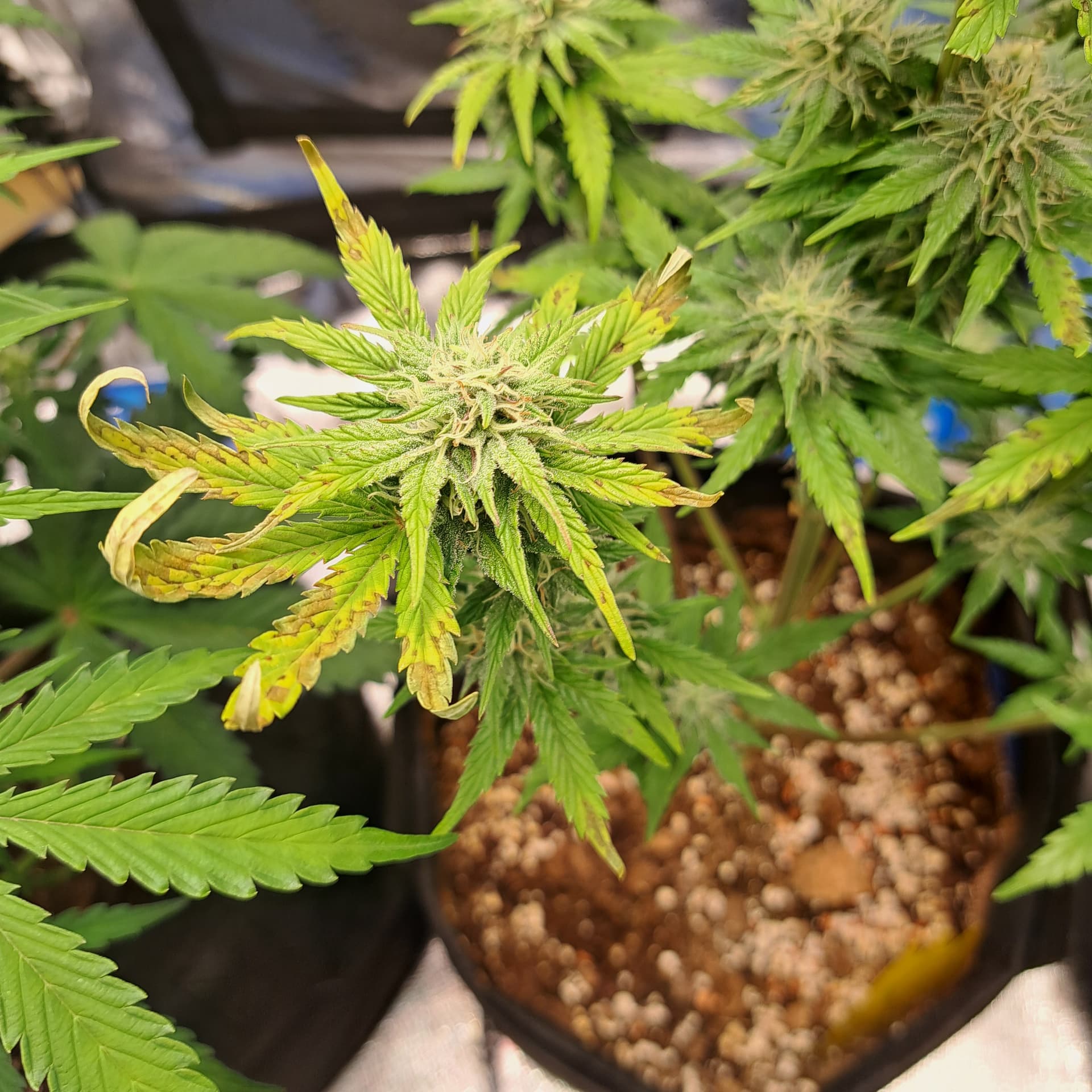 Das „Kronendach“ der eine Pflanze ist sehr hell und auch andere Blätter der pflanze verfärben sich an der Spitze sehr sehr hell.