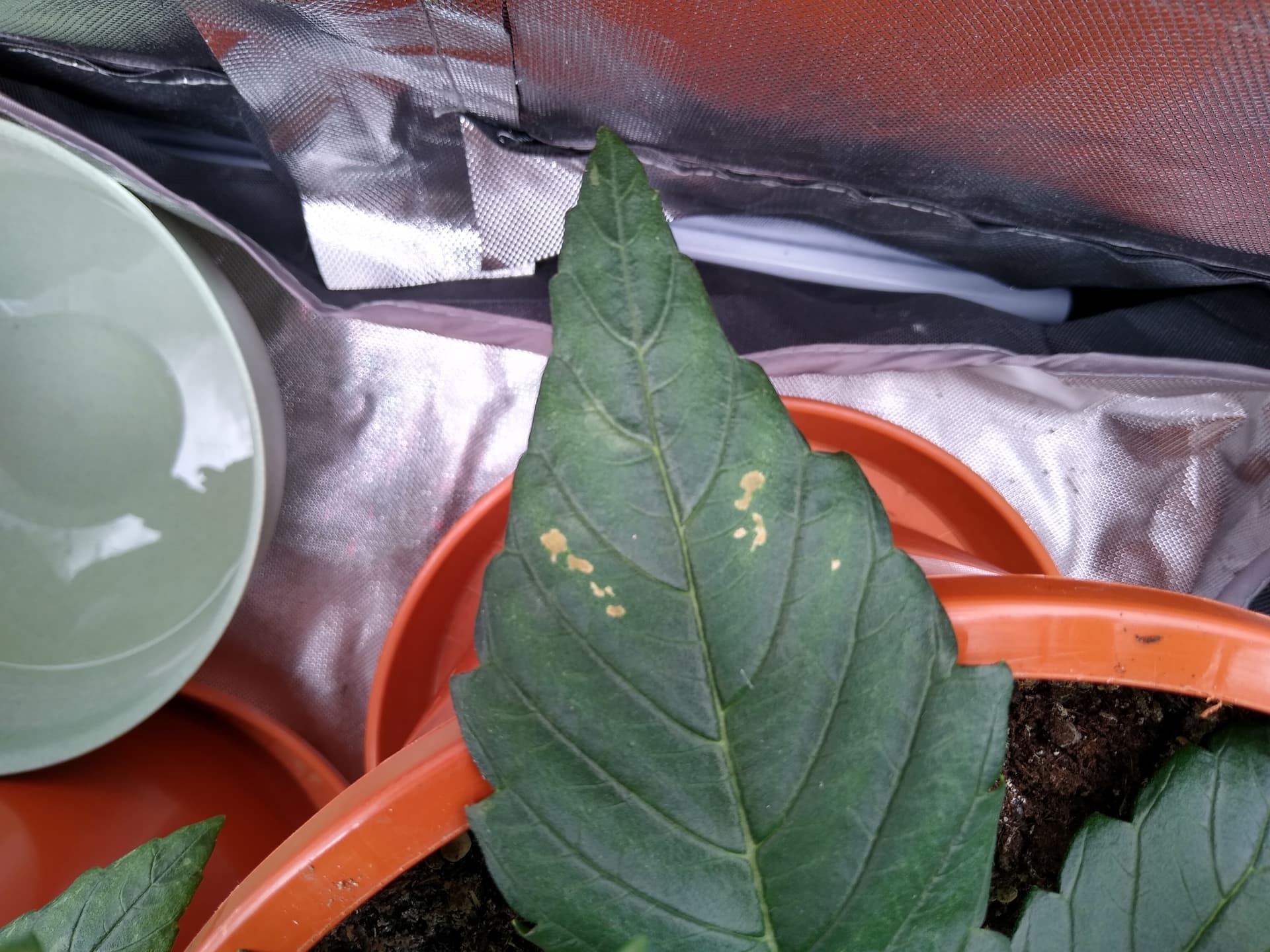 Nun zu meinen Fragen. Was bedeuten Verfärbungen an 2 meiner größten Pflanzen. Ich hab mich durch einige Forenbeiträge gelesen und auch andere Webseiten aufgesucht, genau das habe ich nicht gefunden.