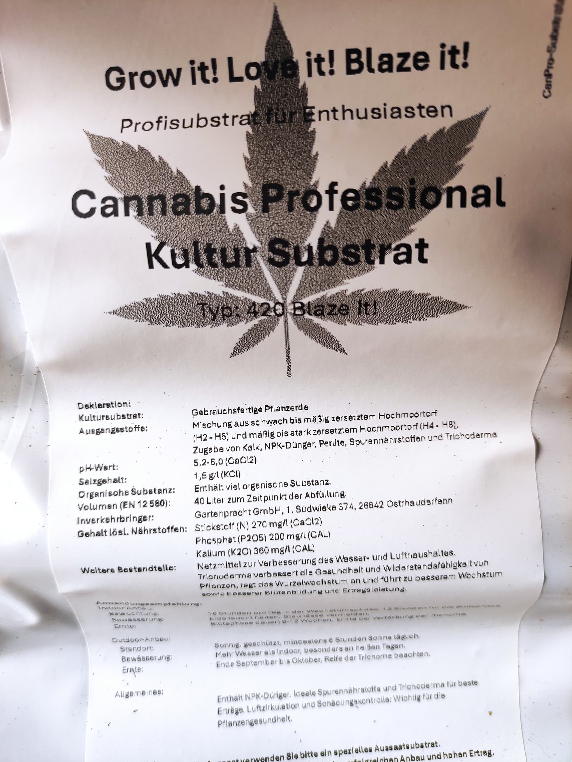 Im Zelt habe ich zwei unterschiedliche Erden. Ich habe als Neueinsteiger in der heißen Phase gekauft was da war und auch so eine Art „Waldboden“ von Terra Professional, die andere Erde kann ich per Datenblatt hier mal zeigen.