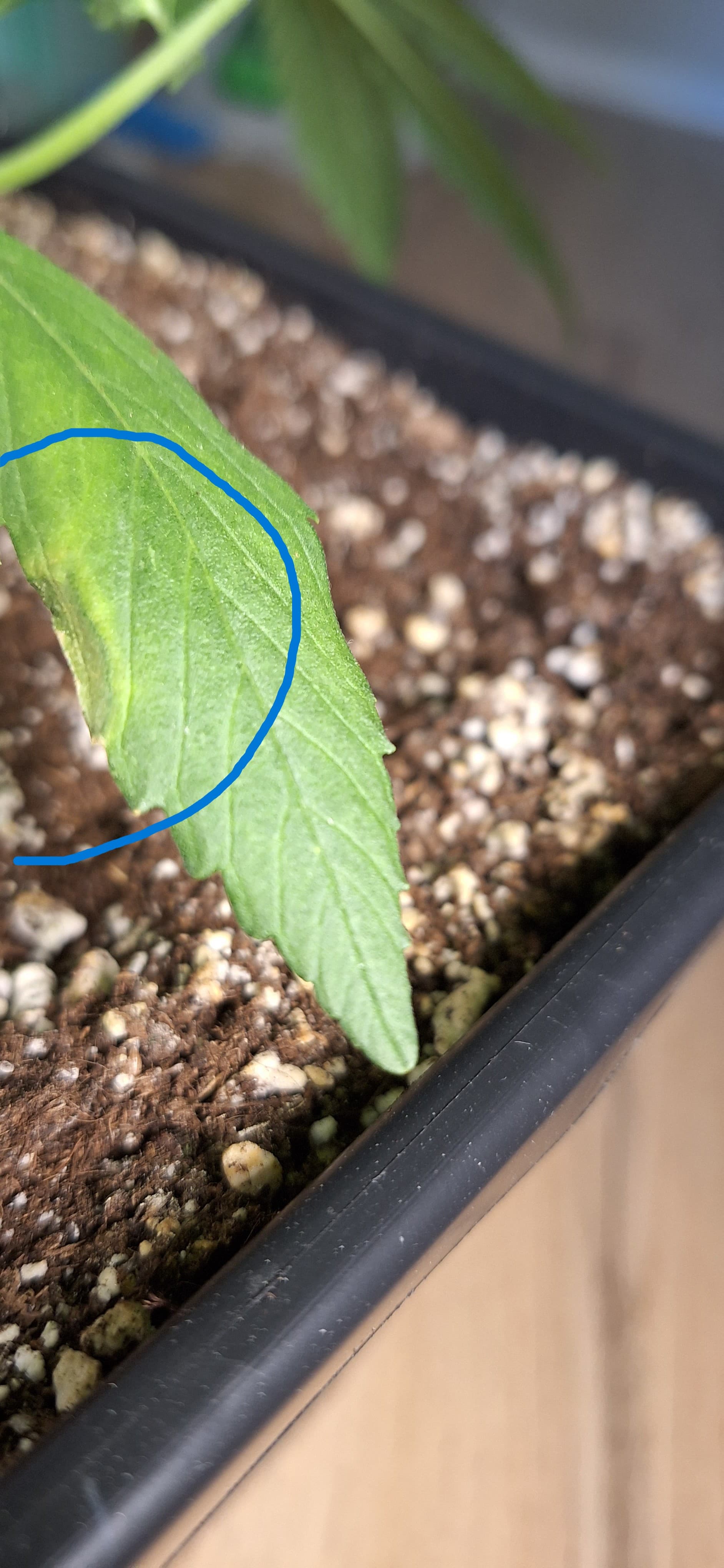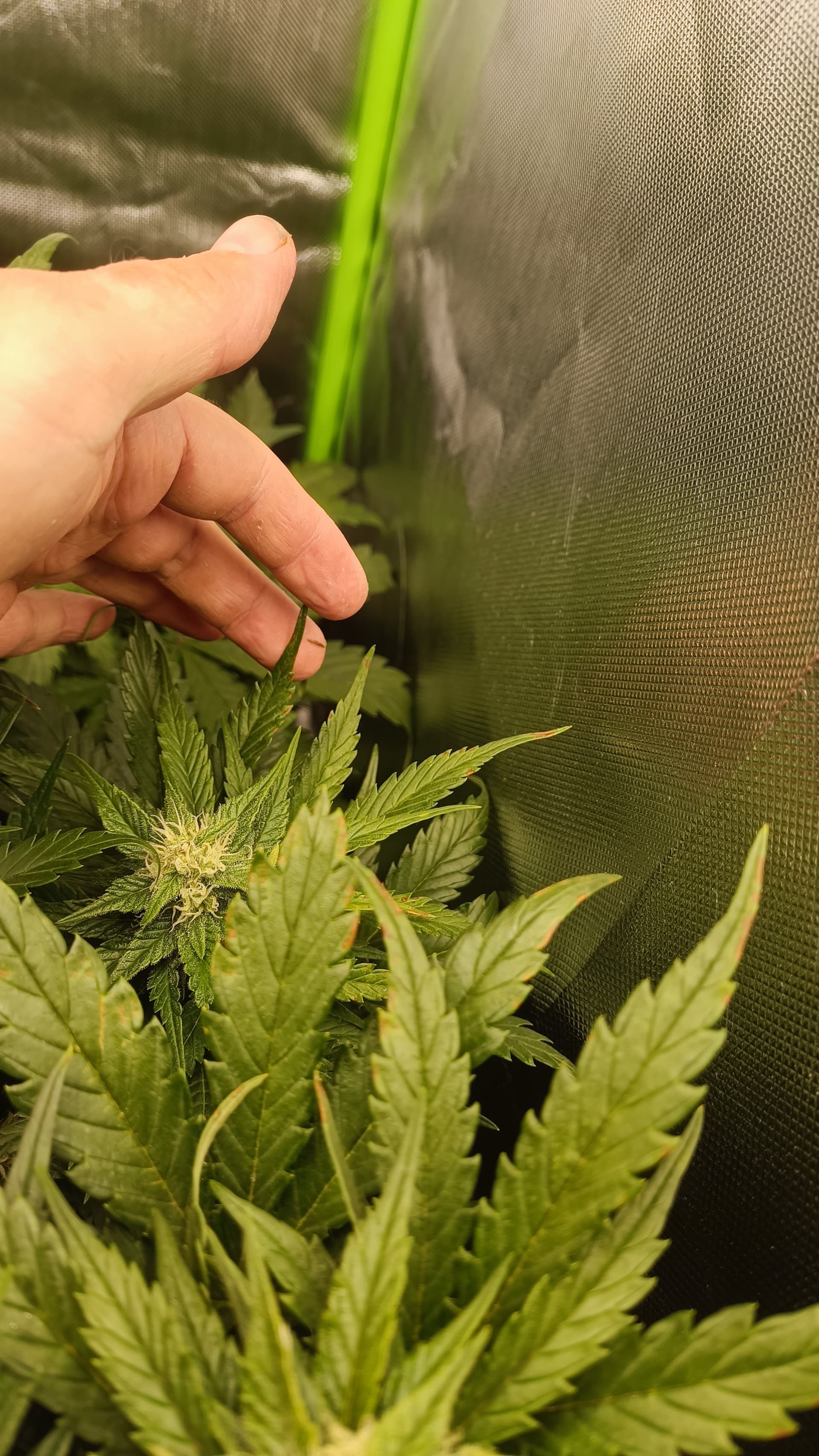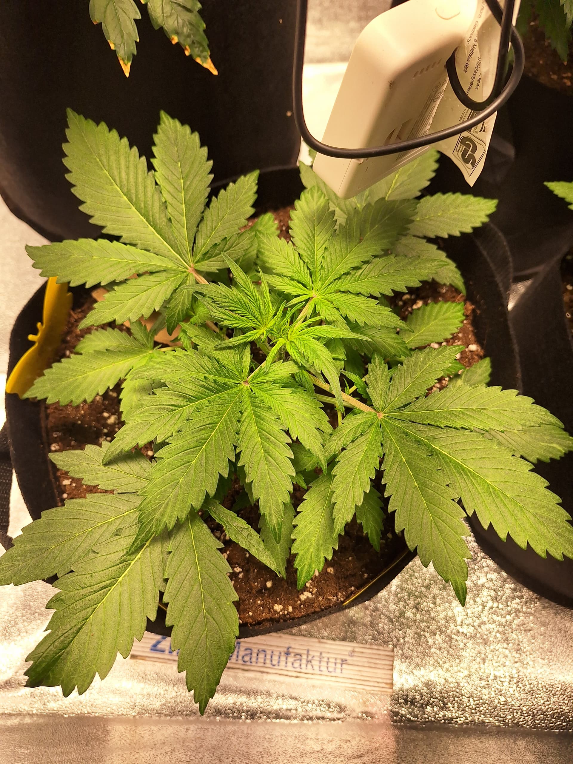 Ist auf den Blättern ein angehender Mg Mangel zu sehen oder nimmt die Pflanze sich die Kraft von dem ersten Blattpaar für die Blüte?